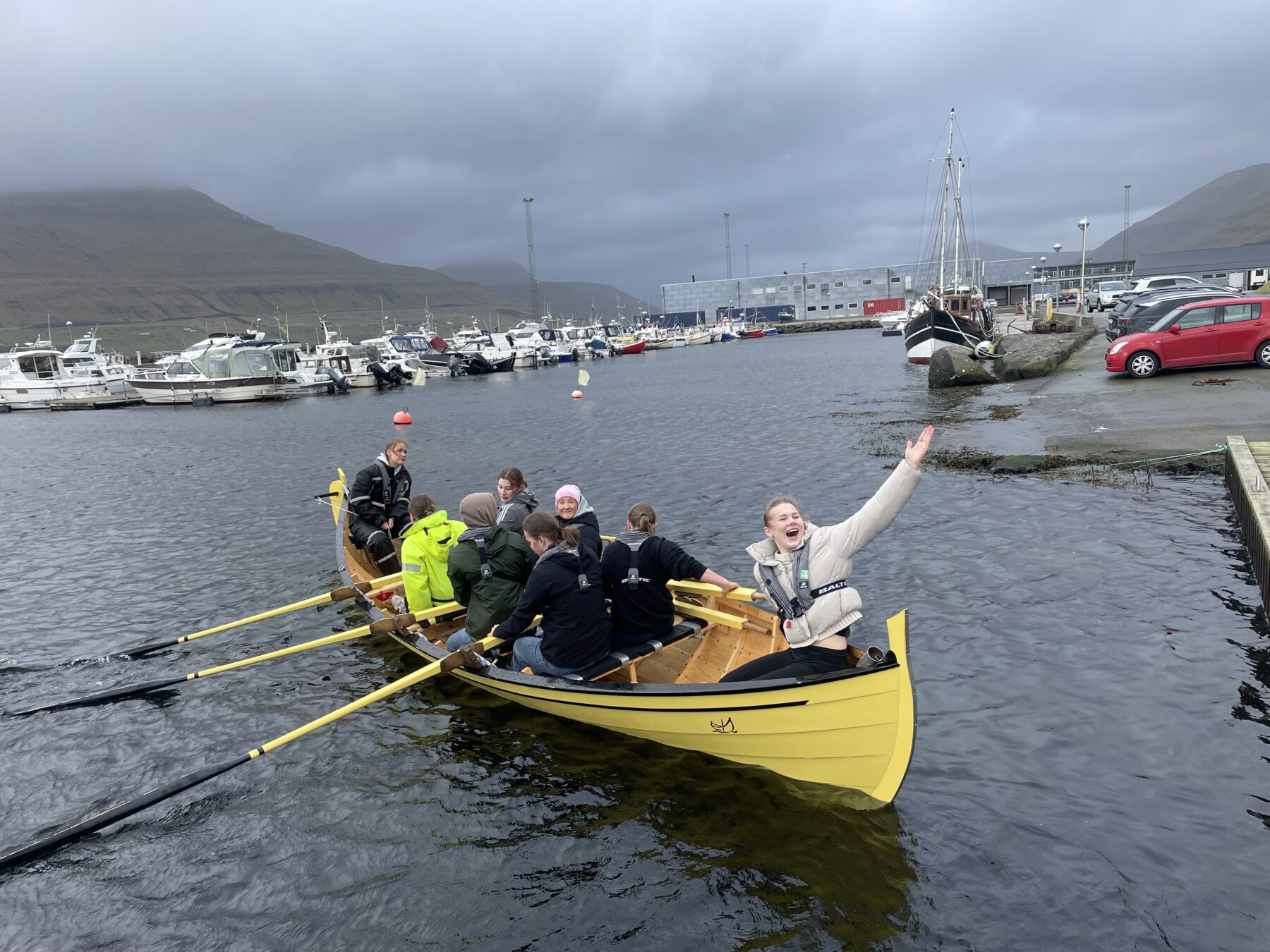 09.04.2025 Hópur nemenda í Færeyjum Í síðustu viku dvaldi hópur nemenda á fyrsta ári í Færeyjum og tók þátt í sameiginlegu NordPlus-verkefni Verzlunarskólans, Menntaskólans í Kambsdal og Tietgen-verslunarskólans í Óðinsvéum. Þema verkefnisins er félagsleg sjálfbærni. Nemendurnir dvöldu á heimilum færeyskra menntaskólanema, sem búsettir eru vítt og breitt um Austurey og á nálægum eyjum. Dagskrá færeysku gestgjafanna var metnaðarfull og fjölbreytt. Meðal annars fengu nemendur kennslu í róðri – þjóðaríþrótt Færeyinga og fóru í sýnisför í verksmiðjur Bakkafrosts, stærsta vinnuveitanda eyjanna. Hópurinn heimsóttu einnig Norrænu ferjuna Smyril line, sem var á leið til Íslands síðar sama dag og fór í dagsferð til Þórshafnar þar sem meðal annars var komið við í Dómkirkjunni og á Lögtingi Færeyja. Þetta skemmtilega og lærdómsríka verkefni er rétt að hefjast, en í upphafi haustmisseris fer íslenski hópurinn til Óðinsvéa ásamt færeysku þátttakendunum. Að lokum munu dönsku og færeysku nemendurnir heimsækja Ísland í janúar á næsta ári. Nemendur Verzlunarskólans stóðu sig afar vel, voru skólanum til mikils sóma og nutu samverunnar með dönskum og færeyskum félögum. Með í för voru kennararnir Katrín Jónsdóttir (dönsku- og lífsleiknikennari) og Rasmus Christiansen (dönskukennari).