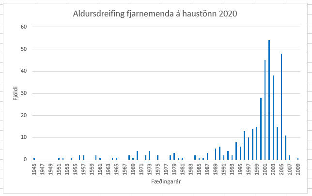 Þegar aldursdreifing fjarnemenda er skoðuð kemur í ljós að tveir þriðju hlutar (65,9%) fjarnemenda eru fæddir á árunum 1999, 2000, 2001, 2002, 2003, 2004 og 2005, en það eru nemendur sem eru á grunnskólaladri og hefðbundunum framhaldsskóla aldri (miðað við þriggja ára námsbrautir) og þrír árgangar sem eru eldri. Hluti þeirra síðst töldu hafa lokið stúdentsprófum en eru að bæta við sig áföngum vegna fyrirhugaðs háskólanáms.