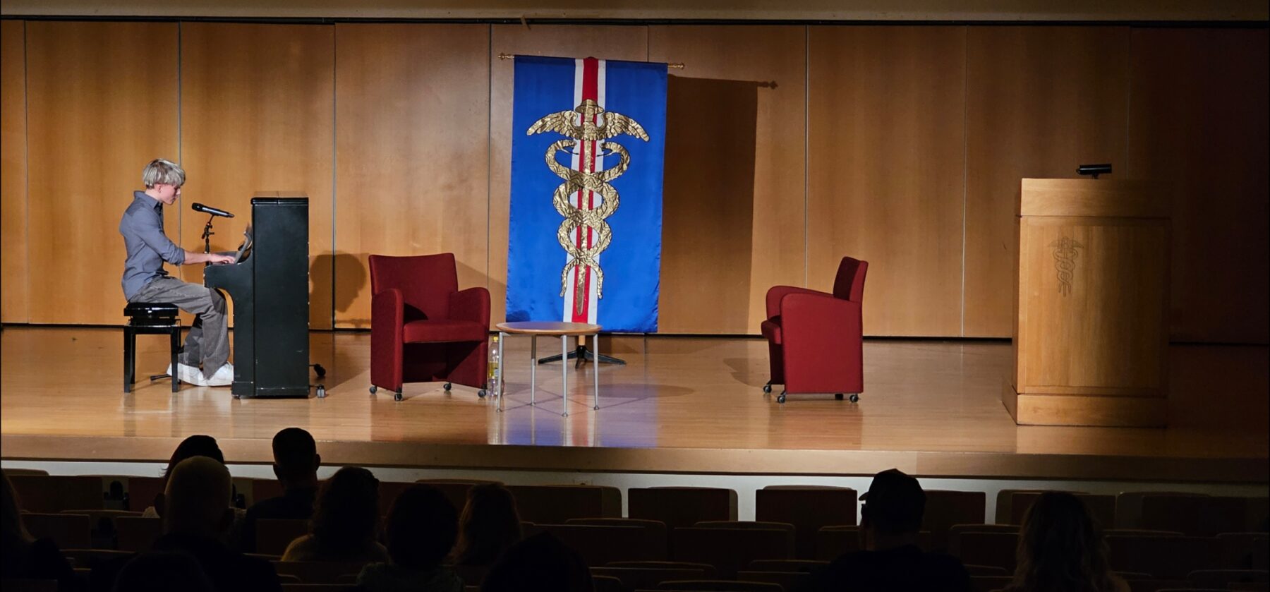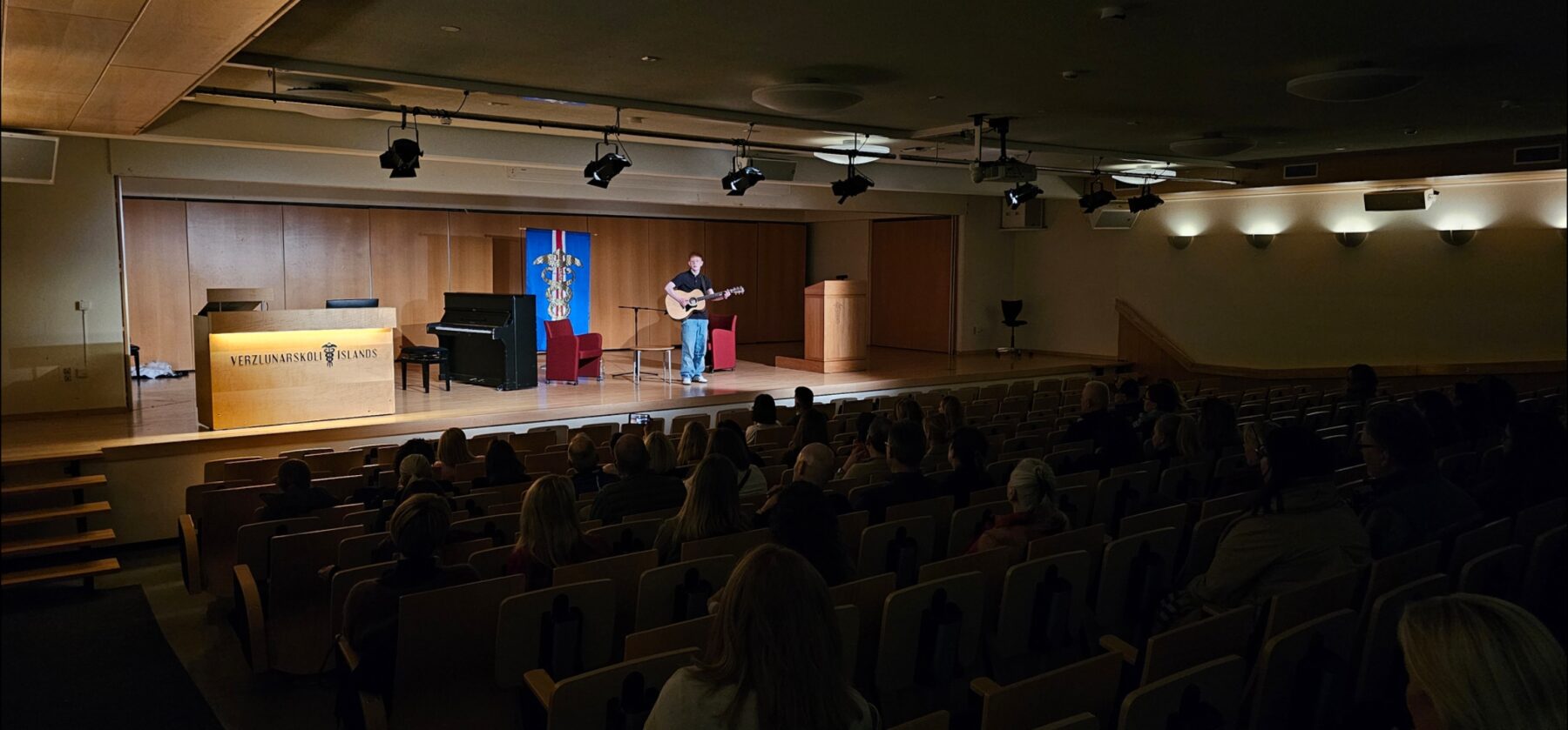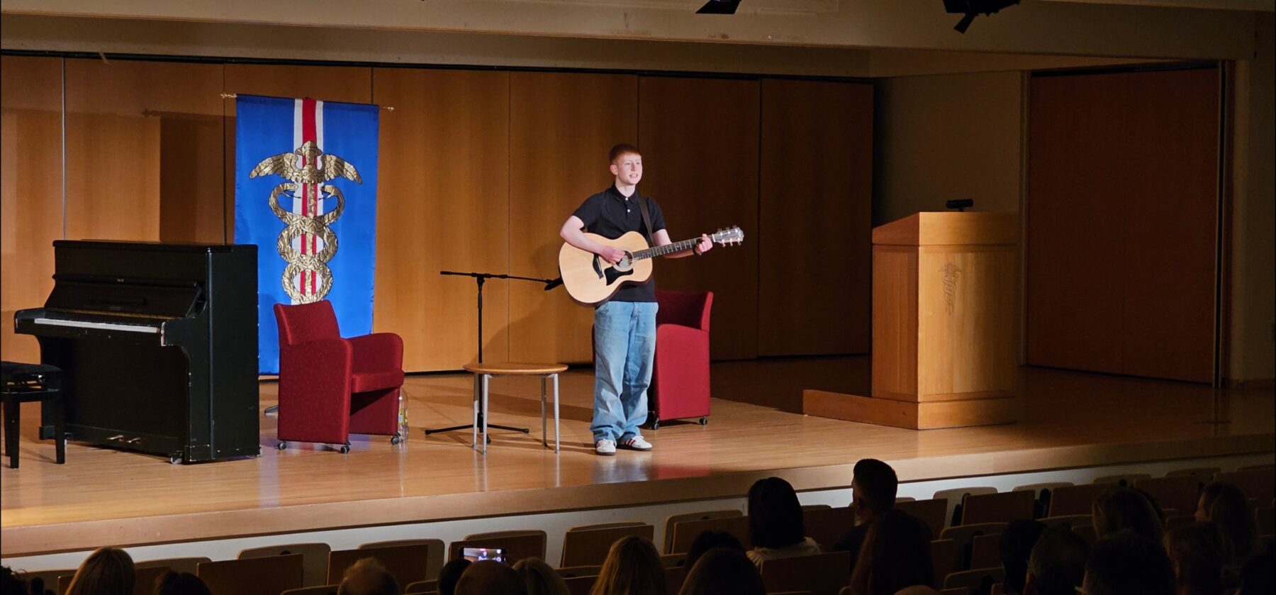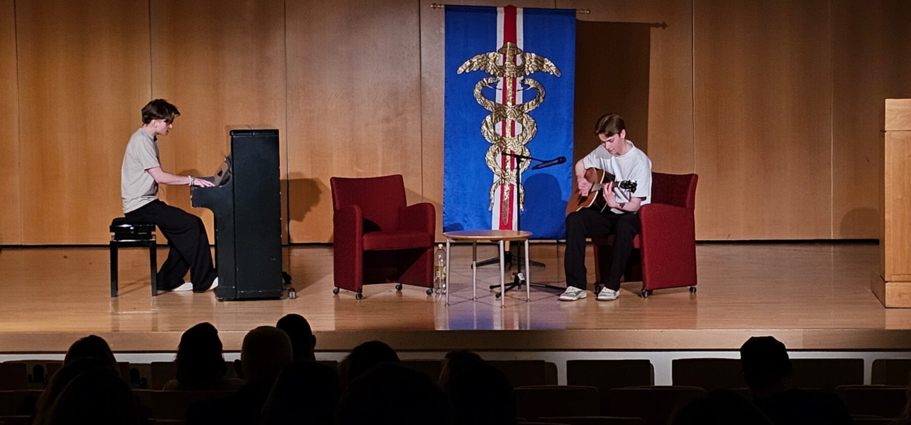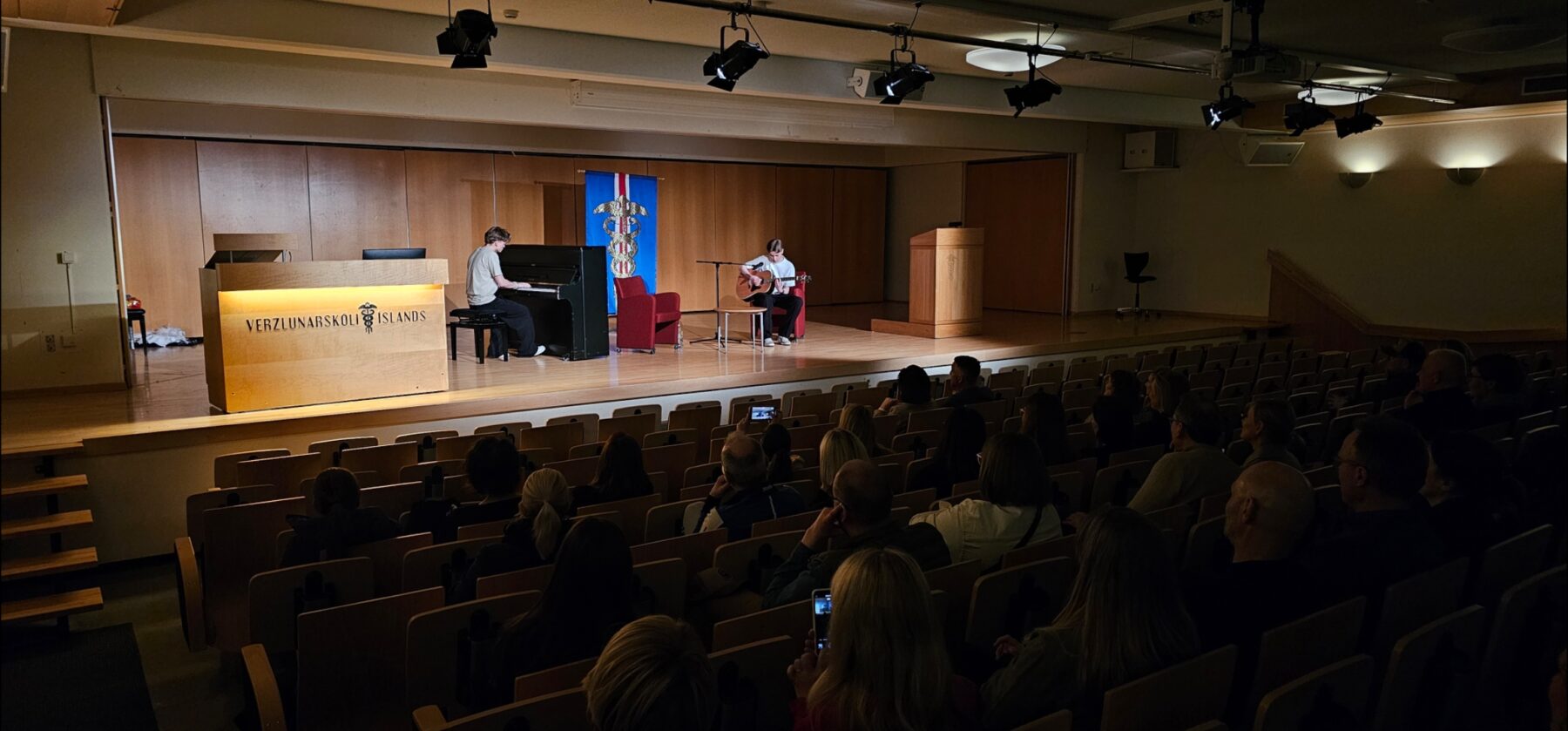 26.03.2025 Áhugavert og skemmtilegt foreldrakvöld: foreldrar spurðu, skólastjóri svaraði Foreldrakvöldið sem haldið var í gær, þriðjudaginn 25. mars, heppnaðist afar vel og var bæði fræðandi og skemmtilegt. Jóhanna Vilhjálmsdóttir fjölmiðlakona og fulltrúi í foreldraráði skólans átti innihaldsríkt samtal við GunnIngu skólastjóra þar sem farið var um víðan völl varðandi skólastarfið. Foreldrar fengu tækifæri til að senda inn spurningar sem skólastjóri svaraði af einlægni og sköpuðust líflegar og áhugaverðar umræður. Nemendur skólans sáu um skemmtiatriði kvöldsins og stóðu sig með mikilli prýði. Jón Arnór á 3. ári flutti frumsamið lag, Snæbjartur og Þorsteinn á 2. ári tóku tvö lög saman og Emil Smári á 1. ári flutti eitt lag fyrir gesti. Kvöldinu lauk svo á notalegu kaffispjalli á Marmaranum þar sem foreldrar fengu tækifæri til að ræða saman í afslöppuðu andrúmslofti.