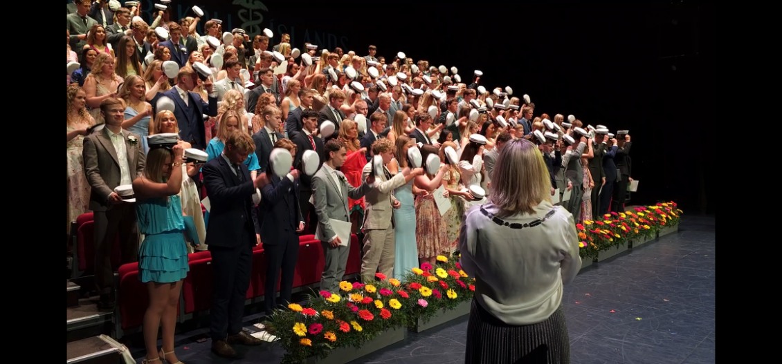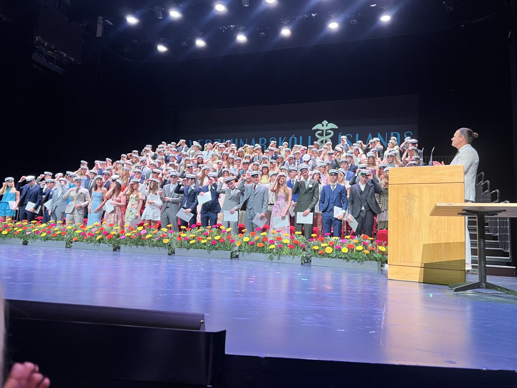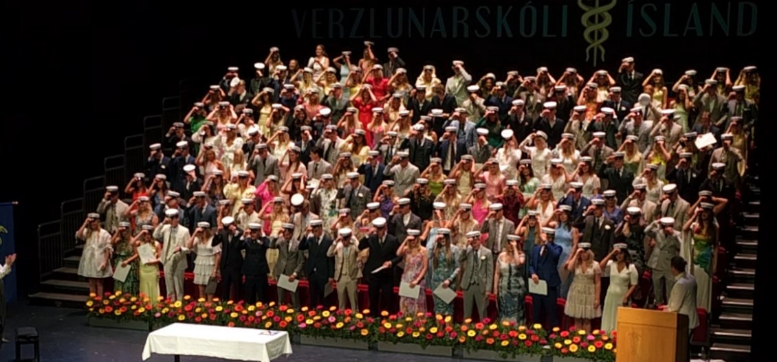 24.05.2025 Brautskráning 2025 Í dag var sannkölluð hátíðarstemning í Borgarleikhúsinu þegar Verzlunarskóli Íslands útskrifaði 332 nemendur með stúdentspróf á tveimur athöfnum. Guðrún Inga Sívertsen, skólastjóri ávarpaði gesti og nýstúdenta með hlýlegri og einlægri ræðu þar sem hún minnti á að útskrift marki tímamót – ekki aðeins í námi, heldur í lífi ungs fólks. „Eftir þriggja ára nám er komið að þeim tímamótum í lífi ykkar að útskrifast með stúdentspróf og kveðja skólann ykkar“ sagði GunnInga. „Þið eruð nú hluti af 120 ára sögu Verzlunarskólans og arfleið hans. Þið eruð fulltrúar nýrra tíma og það er ykkar að móta framtíðina.“ Hún minnti á að síðustu ár hefðu ekki aðeins snúist um bóklegt nám, heldur einnig þroska og að læra af reynslu. „Þið hafið þroskast frá því að vera óharðnaðir unglingar í að verða ungt fólk í heimi hinna fullorðnu. Þið hafið mótað ykkar eigin sýn á heiminn og mátað ykkur í ýmsum aðstæðum. Og það er einmitt það sem á að gera á þessum árum“ sagði hún og lagði áherslu á mikilvægi þess að framhaldsskólaárin séu eftirminnileg, krefjandi og lærdómsrík – þar sem líka megi gera mistök og læra af þeim. Að vanda var úthlutað úr VÍ 100 sjóðnum en hann var stofnaður í tilefni af 100 ára afmæli skólans. Fyrrverandi nemendur skólans lögðu fé í sjóðinn og í skipulagsskrá hans segir m.a. að árlega skuli hann styrkja valda nemendur með fjárframlagi, þegar þeir flytjast milli bekkja eða ljúka stúdentsprófi. Skal við það miðað að styrkþegar hafi sýnt afburða námsárangur eða lagt verulega af mörkum til skólastarfsins á annan hátt. Dúx skólans var Inga Júlíana Jónsdóttir í 3-U, með I. ágætiseinkunn; 9,67. Hlaut hún bókagjöf og námsstyrk. Semidúxinn var Vala Katrín Guðmundsdóttir í 3-S, með I. ágætiseinkunn; 9,65 og hlaut hún bókagjöf og námsstyrk. Nemendur með 9,3 og hærra fengu einnig bókagjafir og námsstyrk og voru það eftirfarandi nemendur: Nafn Einkunn Hrafn Ingi Jóhannsson 3-Y 9,56 Snorri Már Arnarsson 3-Y 9,55 Karen Lind Stefánsdóttir 3-R 9,5 Andri Snær Einarsson 3-X 9,46 Guðmundur Kristinn Davíðsson 3-T 9,37 Tómas Karl Magnússon 3-X 9,31 Hugo Þorri Þorsteinsson 3-S 9,31 Jafnframt voru veitt verðlaun fyrir bestan námsárangur að loknu 1. og 2. ári og voru það eftirfarandi nemendur: Anna Barbara Tómasdóttir 1-U einkunn 9,65 Vilhjálmur Geir Geirsson 2-Y, einkunn 9,9 Skólinn óskar öllum brautskráðum nemendum skólans innilega til hamingju með áfangann og velfarnaðar í framtíðinni. Myndir væntanlegar á næstu dögum.