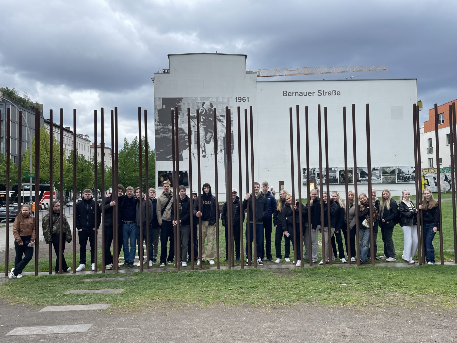 22.04.2024 Ferð nemenda í þýsku til Berlínar 15. – 19. apríl 25 nemendur úr þýsku á 2. ári ásamt tveimur kennurum lögðu land undir fót eldsnemma á mánudagsmorgni til Berlínar. Þegar þangað var komið var farið rakleitt til Hohenschönhausen þar sem hópurinn fékk leiðsögn um Stasi fangelsið. Það var mjög áhrifarík heimsókn og ógleymanlegar sögur sem nemendur fengu að heyra. Nóg var á dagskránni næstu daga en þar má m.a. nefna skólaheimsókn í menntaskólann Droste-Hülshoff sem staðsettur er í suður Berlín. Þar fengu nemendur okkar leiðsögn um skólann og sátu svo tvær kennslustundir. Eftir hádegishlé var komið að kynningum um Verzló og Ísland og óhætt er að segja að nemendur okkar hafi gert það af mikilli fagmennsku. Nemendur okkar fengu leiðsögn um minningarreit Berlínarmúrsins í Bernauerstraße, en þar hófst bygging múrsins og svo var farið upp í sjónvarpsturninn og helstu kennileiti í Berlín skoðuð. Nemendur nýttu ýmis tækifæri til þess að æfa sig í þýskunni og gekk bara nokkuð vel að þeirra sögn. Það var ekki annað að sjá en að nemendur hafi verið ánægðir með ferðina og voru alls staðar til mikillar fyrirmyndar hvar sem þeir komu.