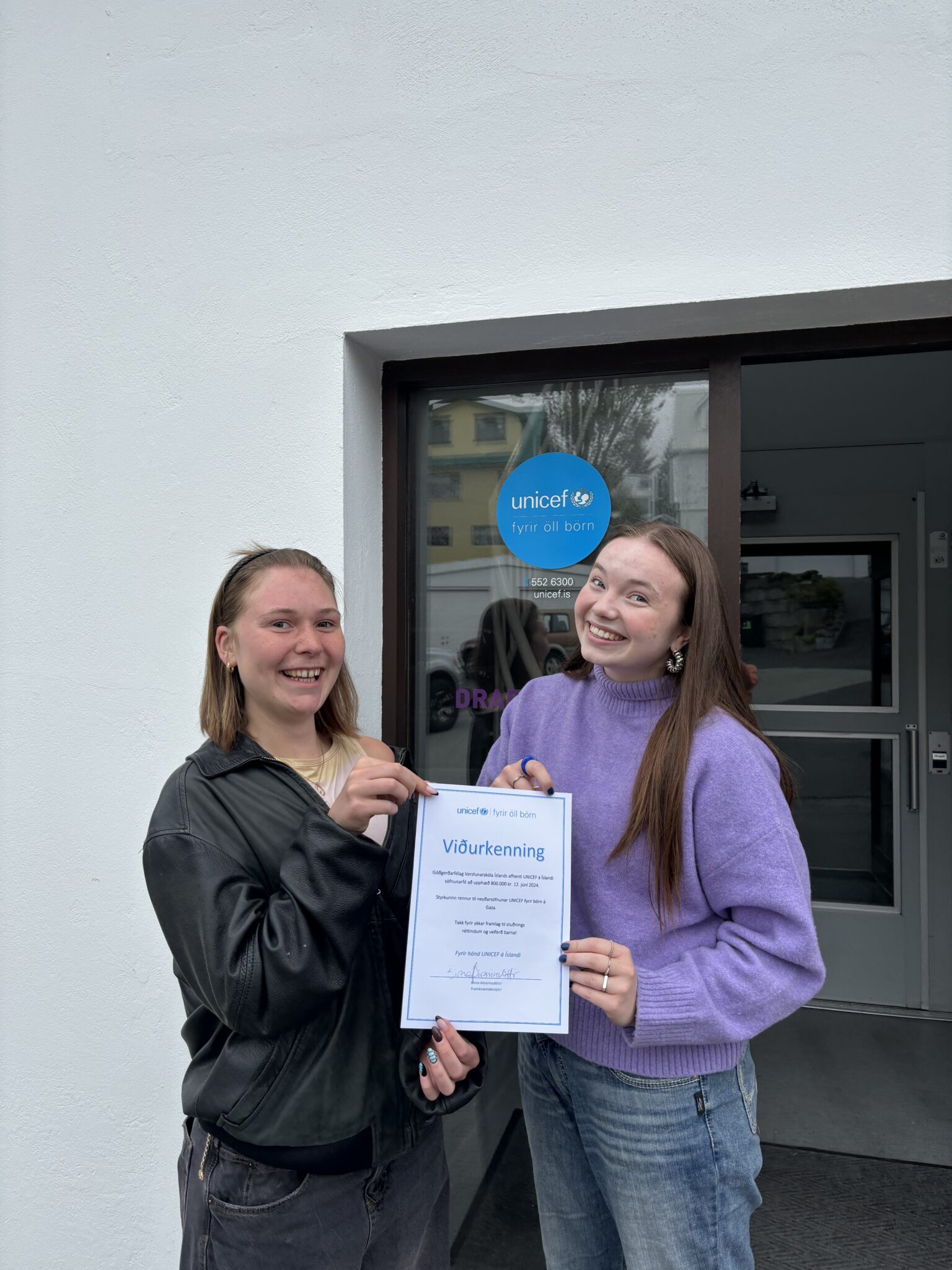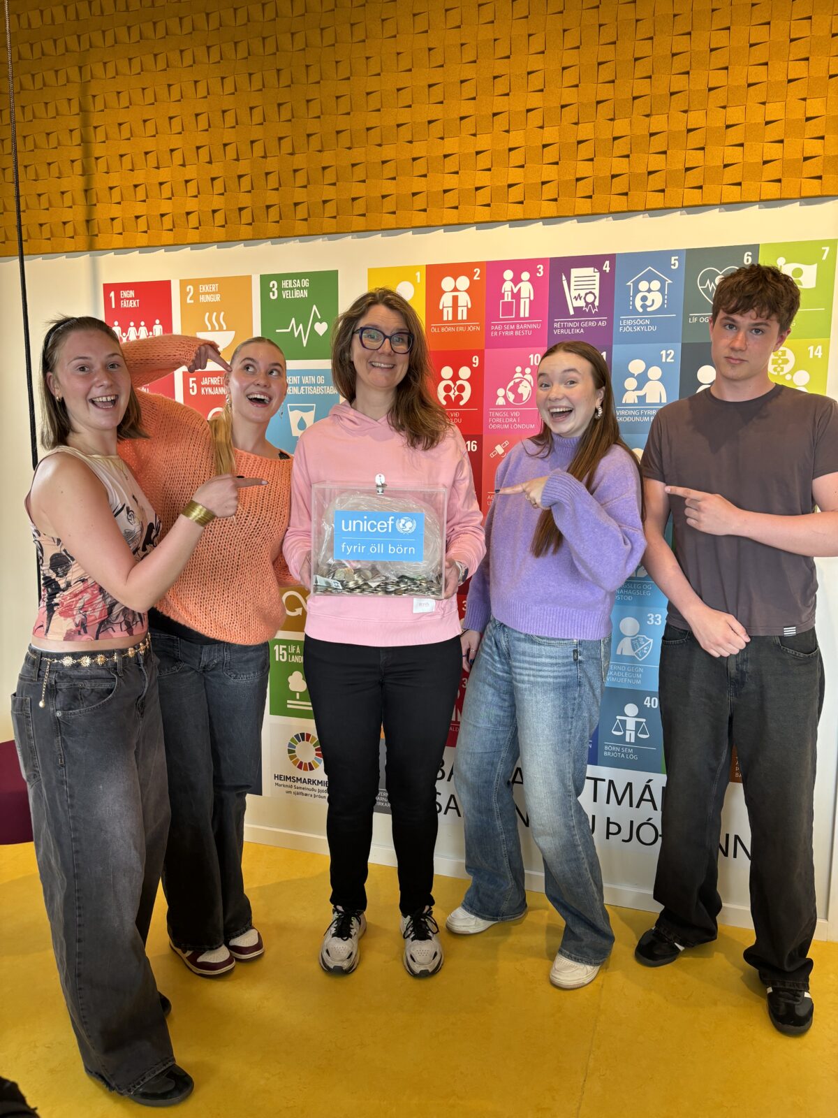 24.07.2024 Góðgerðarráð VÍ styrkti UNICEF GVÍ, Góðgerðarráð Verzlunarskóla Íslands, hefur látið margt gott af sér leiða í gegnum árin. Til að mynda stóð GVÍ að því að reisa barnaskóla í Úganda, í samstarfi við ABC barnahjálp, sem fékk nafnið Litli Verzló. Í ár var ákveðið að styrkja UNICEF, nemendur lögðu ýmislegt á sig til að leggja málefninu lið og framkvæma ýmiskonar áskoranir, t.a.m. tóku Málfó strákarnir að sér afgreiðslu í Matbúð. Anna og Andrea „skiptu“ um skóla í einn dag og gerðust MR-ingar og Nemó hópurinn gekk um skólann með sundgleraugu í heilan dag. Samtals safnaðist 630 þúsund krónur sem Góðgerðarráð afhenti UNISEF. Starfsmenn skólans eru afar stoltir af þessu flotta verkefni nemenda.