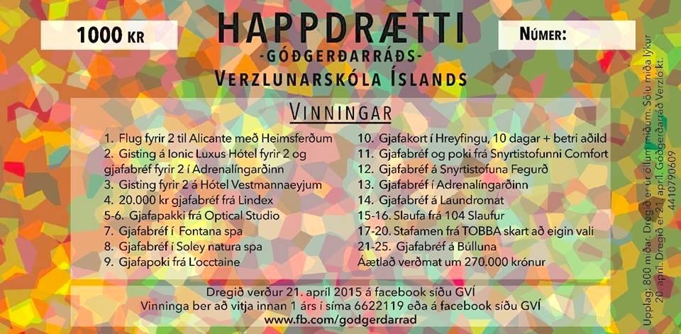 16.04.2015 Happdrætti Góðgerðarráðs VÍ Góðgerðarráð VÍ hefur hafið sölu á happdrættismiðum en allur ágóði af sölu miðanna rennur til ABC barnahjálpar. Miðinn kostar 1000 kr. og eru veglegir vinningar í boði. Má þar helst nefna, flug fyrir 2 til Alicante með Heimsferðum, 20.000 kr. gjafabréf frá Lindex, gisting fyrir 2 á Hótel Vestmannaeyjum og gisting fyrir 2 á lonic Luxus Hótel. Nálgast má miða í gegnum Facebooksíðu góðgerðarráðsins, https://www.facebook.com/godgerdarrad eða með því að senda sms í síma 6622119. Dregið verður 21. apríl. Styrkjum gott málefni!