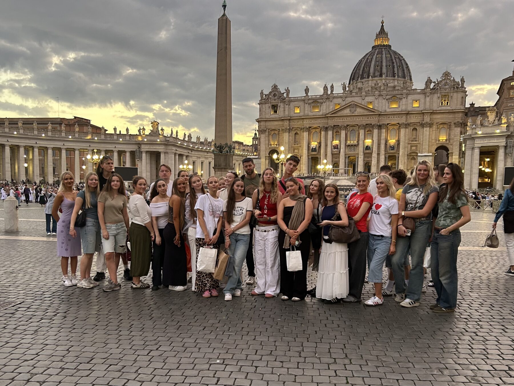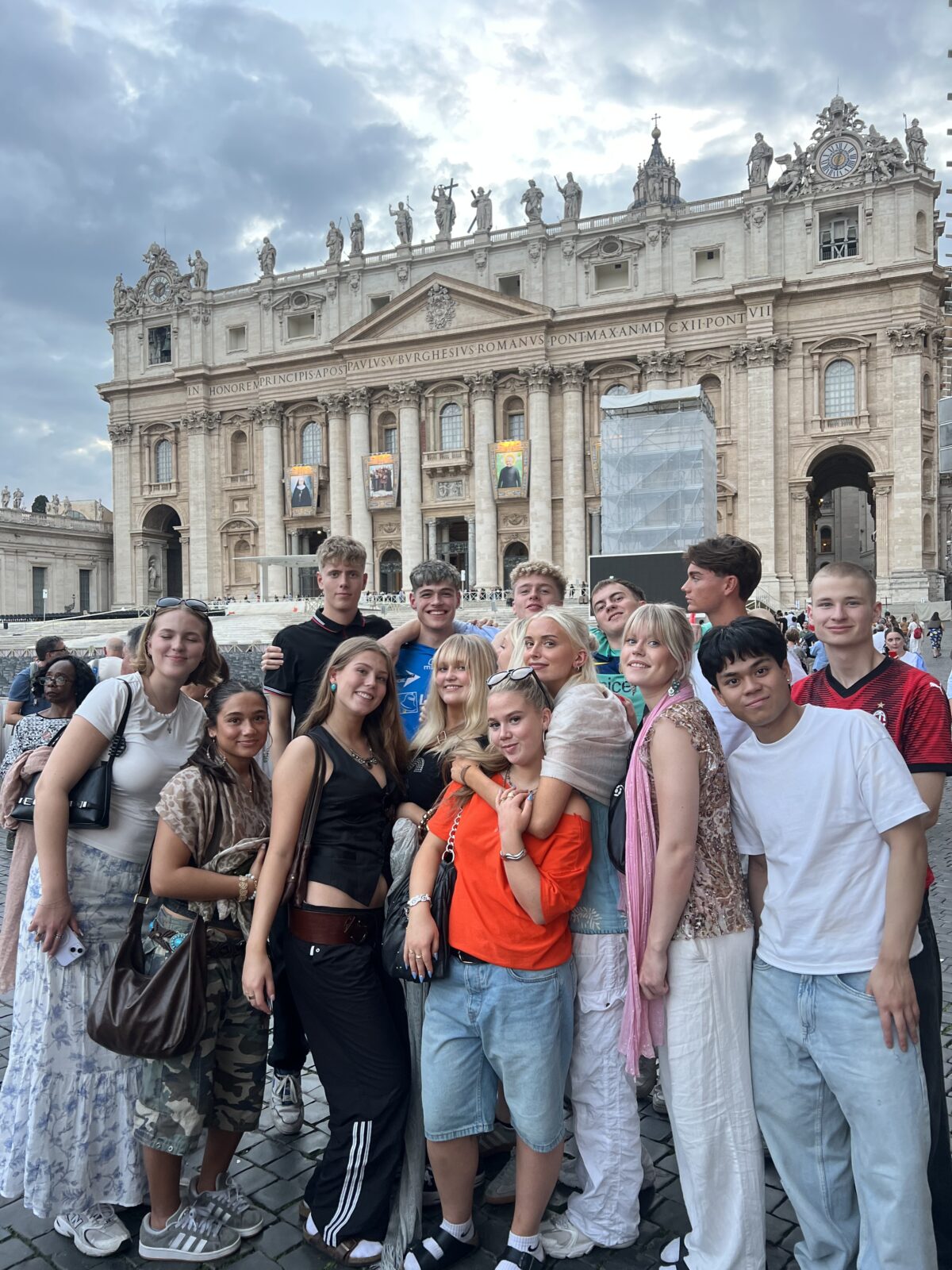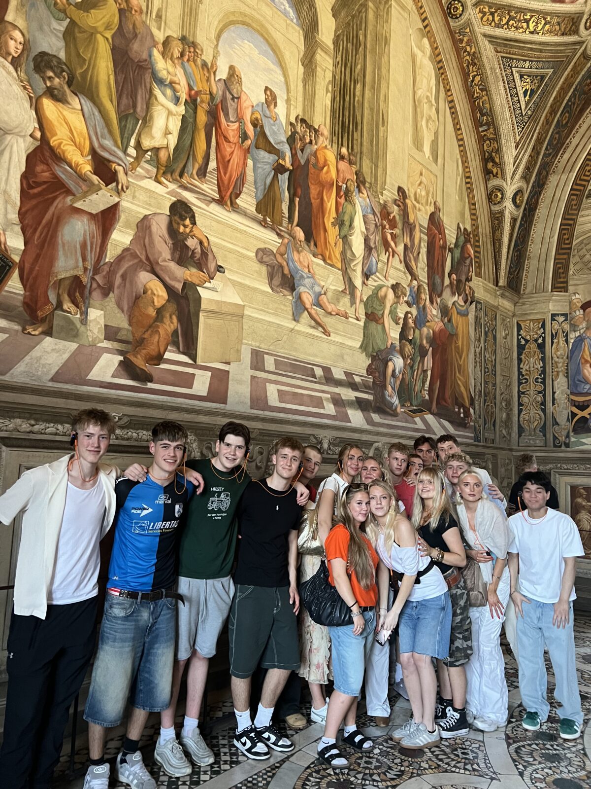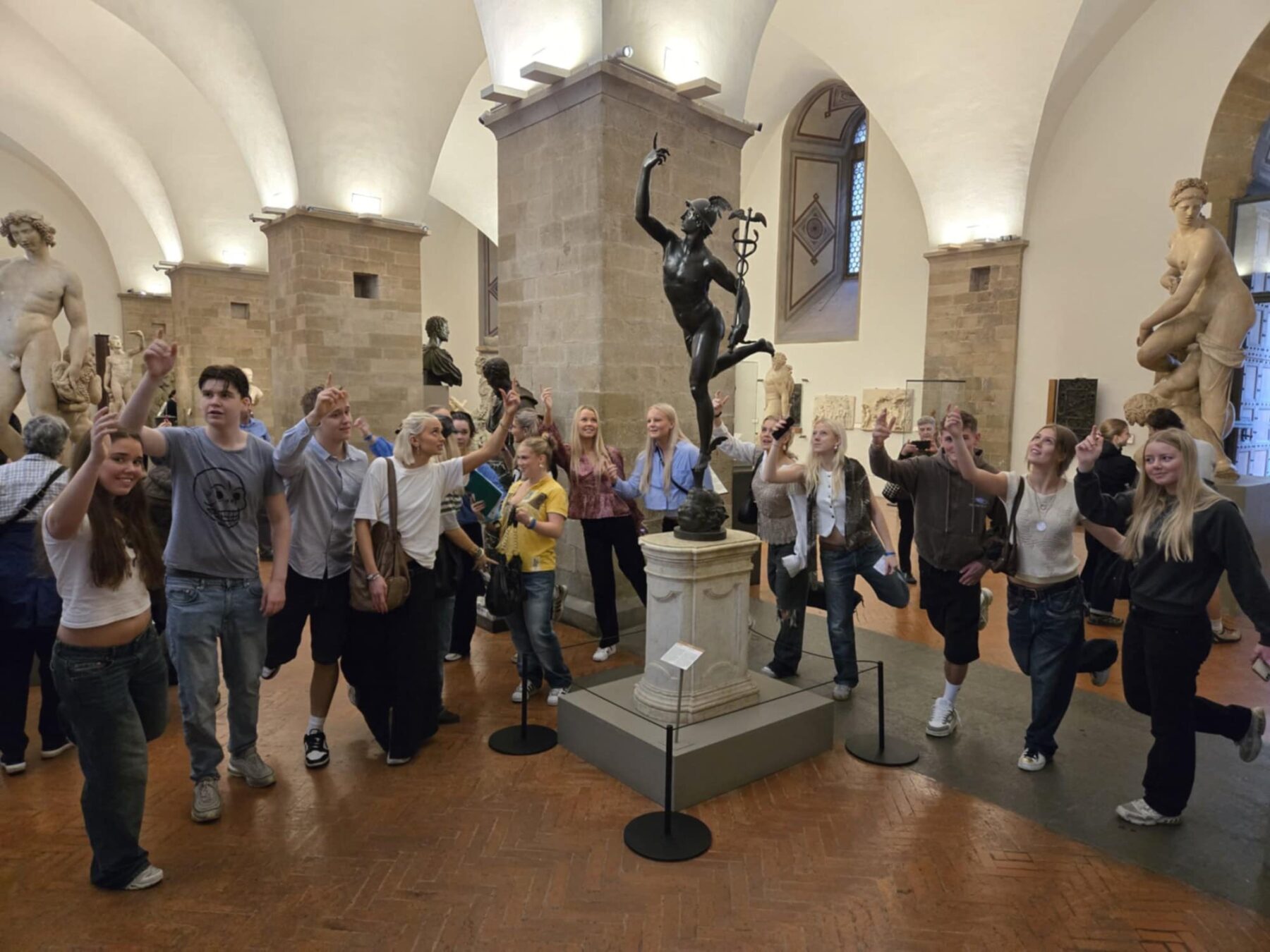 14.11.2024 Heillandi upplifun listasögunema í Ítalíu Dagana 19. til 26. október fóru 75 nemendur úr listasöguáfanga Verzlunarskólans í námsferð til Ítalíu, í fylgd með fjórum fararstjórum. Ferðin hófst í Róm þar sem nemendur skoðuðu ýmsa þekkta menningar- og sögustaði eins og Páfahöllina, Sixtínsku kapelluna, Panþeonhofið, Jesúítakirkjuna, hringleikahúsið Colosseum og Galleria Borghese, þar sem til sýnis eru margar af glæsilegustu höggmyndum barokktímans. Hluti hópsins nýtti tækifærið til að fara á leik AS Roma og Inter Milan, þar sem ríkjandi meistarar frá Mílanó báru sigur úr býtum 1-0. Stemningin á Stadio Olimpico var samt sem áður óviðjafnanleg. Næst lá leiðin til Flórens þar sem hópurinn heimsótti meðal annars Bargello og Uffizi-listasöfnin, sem hýsa fjölda af frægustu verkum endurreisnarinnar, auk Galleria Accademia, þar sem hin heimsþekkta Davíðsstytta Michelangelos stendur. Einnig fór stór hluti hópsins upp í hvelfingu dómkirkju borgarinnar sem er eitt helsta byggingarfræðilega undur sögunnar. Ferðinni lauk með stuttu stoppi í Mílanó þar sem hópurinn heimsótti hina stórfenglegu gotnesku dómkirkju, Duomo, og hina sérstöku Beinakirkju, Santa Maria delle Ossa. Fararstjórarnir voru afar ánægðir með frammistöðu nemenda í ferðinni en sjaldan hefur verið farið með áhugasamari og skemmtilegri hóp í þessa ferð Það sem meðal annars gerir ferð sem þessa svo skemmtilega er að nemendur höfðu áður í áfanganum lært um flest af því sem skoðað var í ferðinni. En eins og orðatiltækið segir þá er sjón sögu ríkari!