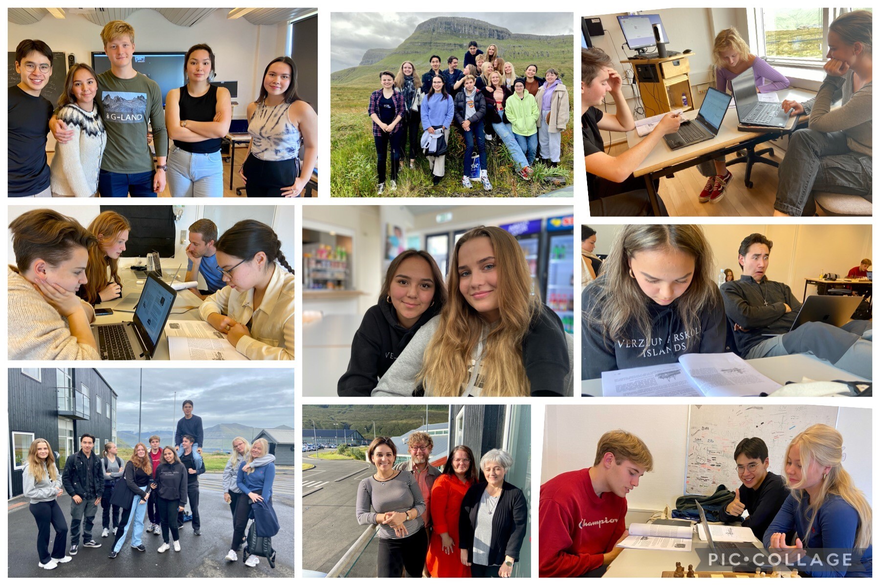 30.09.2021 Heimsókn til Færeyja Norður- Atlantshafsbekkurinn okkar, 2N NGK, var heimsóttur í Miðnám í Kamsdal nú fyrr í mánuðinum og voru móttökurnar vægast sagt frábærar. Bekkurinn kemur til Íslands í janúar 2022 og hefur þá nám í Versló. Því næst heldur hann til Grænlands haustið ‘22 og útskrifast með danskt stúdentspróf þar í landi vorið ‘23. Lífið í Færeyjum er töluvert ólíkt því sem þau kynntust í Danmörku þar sem fyrsta námsárið fór fram. Þá er að sögn hópsins allt miklu rólegra og yfirvegaðra í Færeyjum. Við sem heimsóttum hópinn, Ármann alþjóðafulltrúi og Berglind Helga náms- og starfsráðgjafi getum með sanni sagt að þarna er á ferðinni virkilega flottur og vel samsettur nemendahópur frá Danmörku, Færeyjum, Grænlandi og Íslandi. Þau eru mjög spennt að koma til okkar í Versló og við ekki síður spennt að taka á móti þeim. Eftir stutta og góða samveru með krökkunum myndum við helst vilja taka sjálf á móti hverjum einasta nemanda inn á okkar eigið heimili en það má víst ekki. Um þessar mundir er því leitað eftir fjölskyldum til að hýsa þau. Hægt er að fá nánari upplýsingar og skrá sig til leiks hjá Ármanni Halldórssyni, verkefnastjóra í alþjóðasamskiptum.