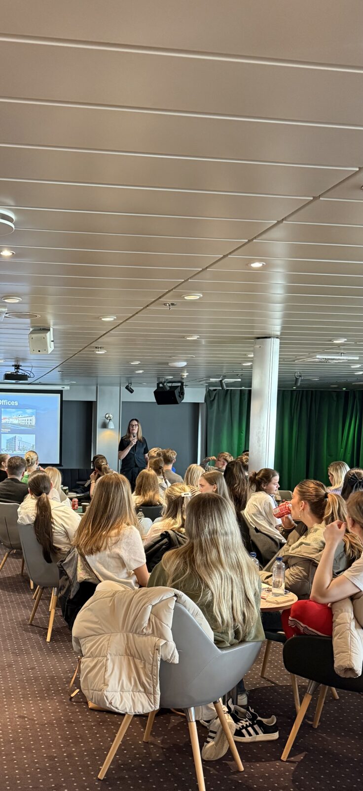 09.04.2025 Hópur nemenda í Færeyjum Í síðustu viku dvaldi hópur nemenda á fyrsta ári í Færeyjum og tók þátt í sameiginlegu NordPlus-verkefni Verzlunarskólans, Menntaskólans í Kambsdal og Tietgen-verslunarskólans í Óðinsvéum. Þema verkefnisins er félagsleg sjálfbærni. Nemendurnir dvöldu á heimilum færeyskra menntaskólanema, sem búsettir eru vítt og breitt um Austurey og á nálægum eyjum. Dagskrá færeysku gestgjafanna var metnaðarfull og fjölbreytt. Meðal annars fengu nemendur kennslu í róðri – þjóðaríþrótt Færeyinga og fóru í sýnisför í verksmiðjur Bakkafrosts, stærsta vinnuveitanda eyjanna. Hópurinn heimsóttu einnig Norrænu ferjuna Smyril line, sem var á leið til Íslands síðar sama dag og fór í dagsferð til Þórshafnar þar sem meðal annars var komið við í Dómkirkjunni og á Lögtingi Færeyja. Þetta skemmtilega og lærdómsríka verkefni er rétt að hefjast, en í upphafi haustmisseris fer íslenski hópurinn til Óðinsvéa ásamt færeysku þátttakendunum. Að lokum munu dönsku og færeysku nemendurnir heimsækja Ísland í janúar á næsta ári. Nemendur Verzlunarskólans stóðu sig afar vel, voru skólanum til mikils sóma og nutu samverunnar með dönskum og færeyskum félögum. Með í för voru kennararnir Katrín Jónsdóttir (dönsku- og lífsleiknikennari) og Rasmus Christiansen (dönskukennari).