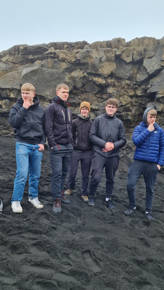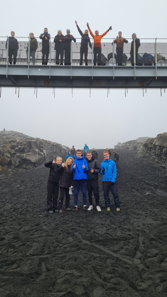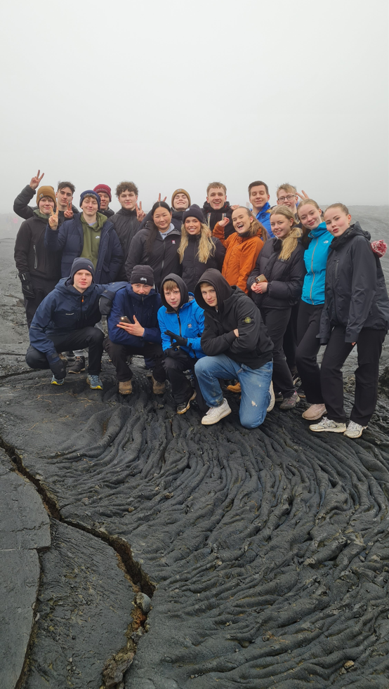 25.04.2023 Jarðfræðiferð Nemendur í jarðfræði á eðlisfræðibraut á 1. ári fóru í jarðfræðiferð um Reykjanesið síðastliðinn miðvikudag. Það gekk á með sudda og þoka var nær allan tíman en það eyðilagði þó ekki upplifun nemenda á að skoða hina einstöku jarðfræði sem finna má á Reykjanesi. Nýja hraunið frá Geldingagosinu 2021 vekur sérstaka athygli með fallegum hraunreipum. Þar sem enn mikill hiti er inn í hrauninu standa gufustrókar víða upp úr sprungum í hrauninu með einstökum steindaútfellingum sem munu hverfa með tímanum. Upplifun nemenda af náttúru og jarðfræði landsins er mikil og njóta þeir hafa að gott aðgengi nánast í bakgarðinum.