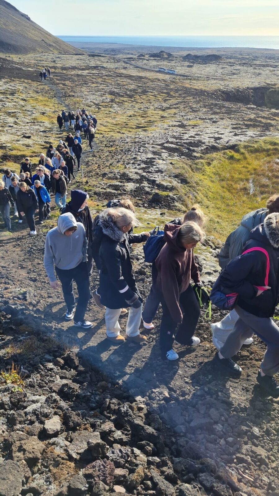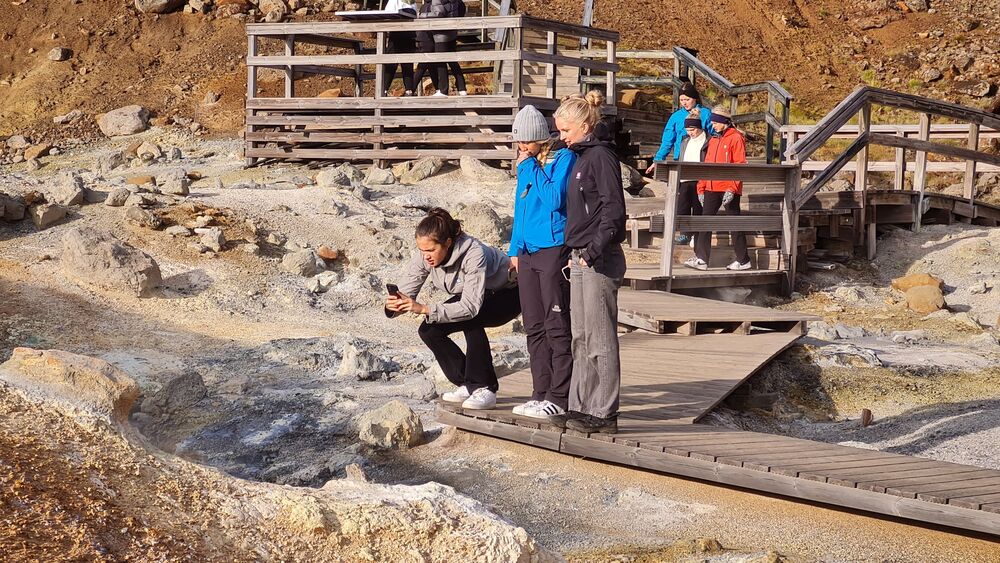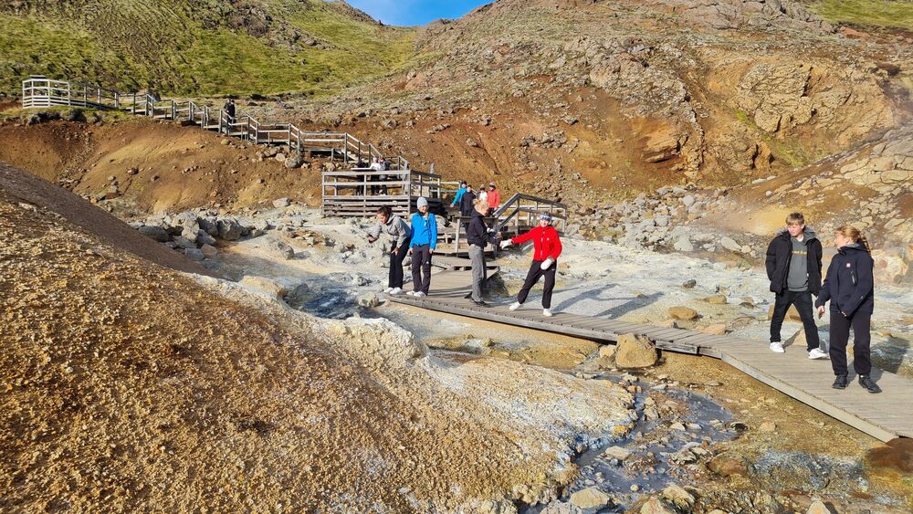 28.09.2023 Jarðfræðiferð Jarðfræðiferð um Reykjanes var farin í síðustu viku þar sem nemendur kynntu sér jarðfræðilega uppbyggingu Reykjnesskagans og hvernig landslagið hefur mótast af eldgosum sem hafa átt sér stað á ísaldskeiðum og hlýskeiðum. Það er einstök upplifun að geta séð landið verða til með eldgosum og hraunið í Nátthaga þótti mörgum vera hápunktur ferðarinnar.