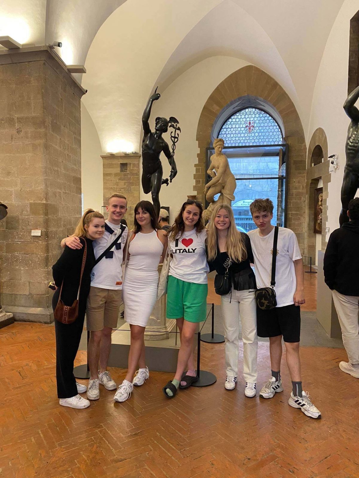 28.10.2021 Listasöguferð til Ítalíu Dagana 19. til 26. október fóru allir nemendur á 3. ári á lista- og nýsköpunarbraut ásamt nemendum í listasöguvali í námsferð til Ítalíu. Ferðin hófst í Róm þar sem m.a. var farið í Páfahöllina, Sixtínsku kapelluna, Péturskirkjuna, Panþeonhofið, Jesúítakirkjuna, hringleikahúsið Colosseum og Galleria Borghese þar sem margar af glæsilegustu höggmyndum barokktímans eru til sýnis. Þaðan lá leiðin til Flórens þar sem hópurinn fór í hið frábæra Uffizi listasafn sem hefur að geyma mörg af helstu verkum endurreisnarinnar sem og í Galleria Accademia sem hýsir Davíðsstyttu Michelangelos. Einnig fór stór hluti hópsins upp í hvelfingu dómkirkju borgarinnar sem er eitt helsta byggingarfræðilegt undur sögunnar. Ferðinni lauk svo með stuttu stoppi í Mílanó en miðpunktur borgarinnar, hin glæsilega gotneska dómkirkja Duomo, var heimsótt og farið saman upp á þak hennar. Óhætt er að segja að ferðin hafi heppnast einkar vel og voru þátttakendur skólanum til mikils sóma.