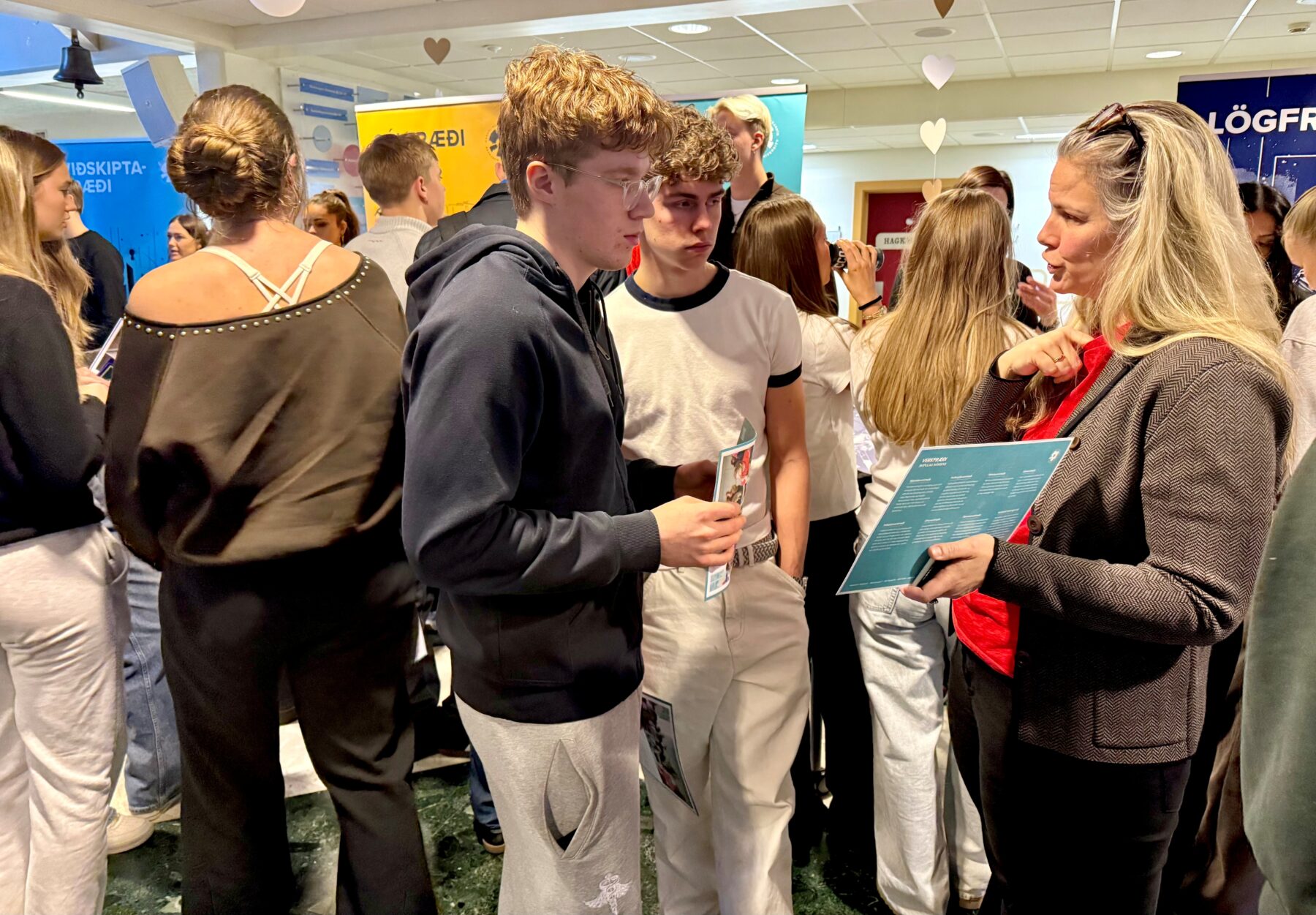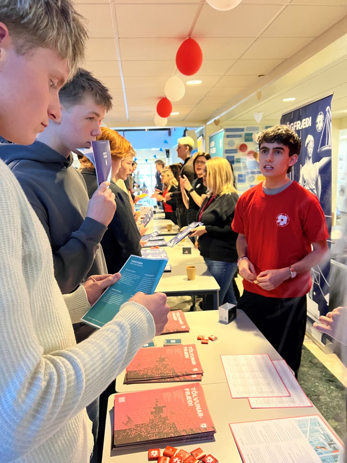 13.02.2026 Litli háskóladagurinn haldinn á Marmaranum Mikill áhugi var á Litla háskóladeginum sem haldinn var á Marmaranum í gær, þar sem útskriftarnemendur og nemendur á öðru ári fengu tækifæri til að kynna sér fjölbreytta möguleika í áframhaldandi námi. Á staðnum voru fulltrúar háskóla og annarra menntastofnana sem kynntu ólíkar námsleiðir og veittu m.a. upplýsingar um inntökuskilyrði og námsfyrirkomulag. Nemendur sýndu mikinn áhuga, spurðu spurninga og áttu góð samtöl um framtíðaráform sín. Verzlunarskólinn þakkar öllum þeim sem tóku þátt í deginum og lögðu sitt af mörkum til að gera Litla háskóladaginn vel heppnaðan.
