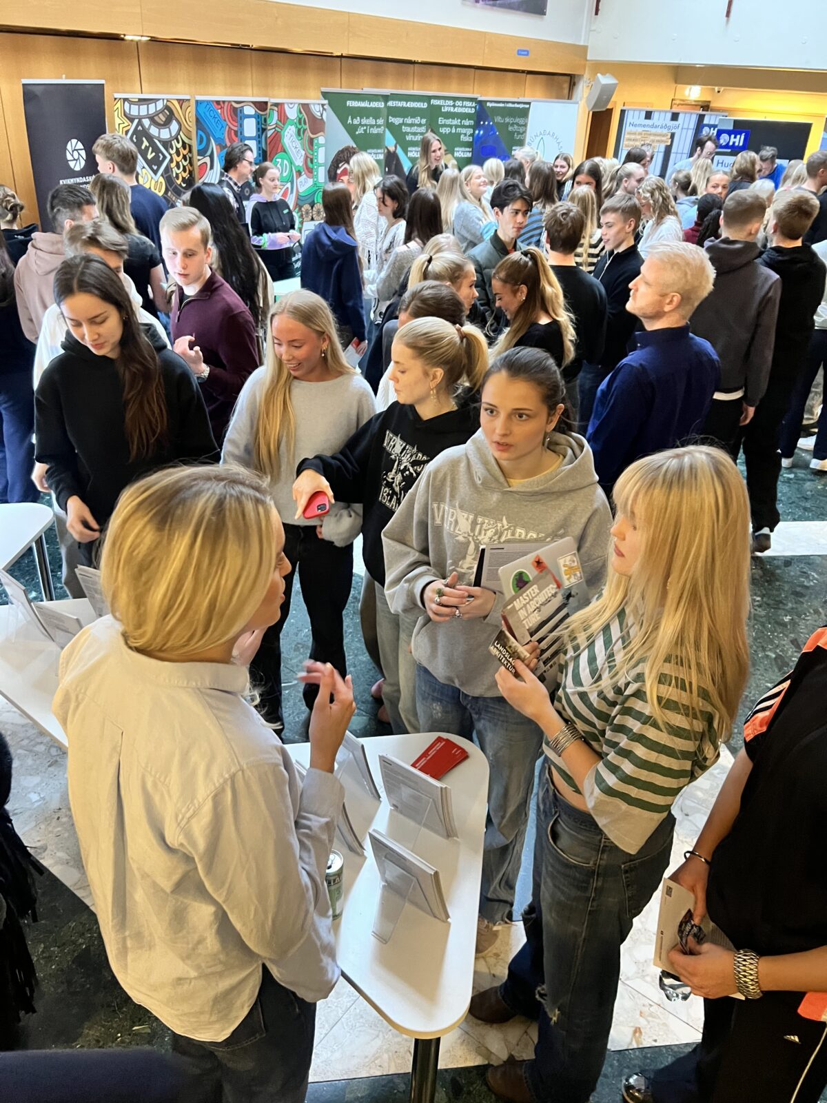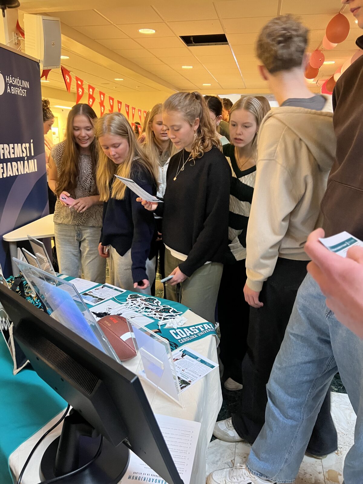 13.02.2025 Marmarinn fylltist af áhugasömum nemendum á Háskóladeginum Það var líf og fjör á Marmaranum þegar útskriftarnemendur og nemendur á öðru ári komu saman til að kynna sér fjölbreytt námsframboð á Háskóladeginum. Þátttaka var afar góð, enda frábært tækifæri fyrir nemendur til að kynna sér fjölbreytt val og velta fyrir sér framtíðarmöguleikum sínum. Fulltrúar háskólanna og annarra stofnanna kynntu spennandi námsleiðir, gáfu hagnýtar upplýsingar um skólaval og svöruðu spurningum nemenda sem veltu fyrir sér næstu skrefum. Verzlunarskólinn þakkar öllum þeim sem tóku þátt í þessum vel heppnaða degi.