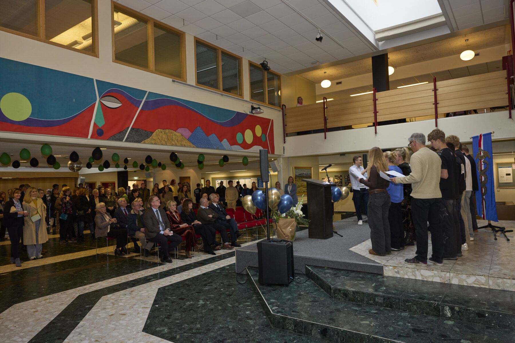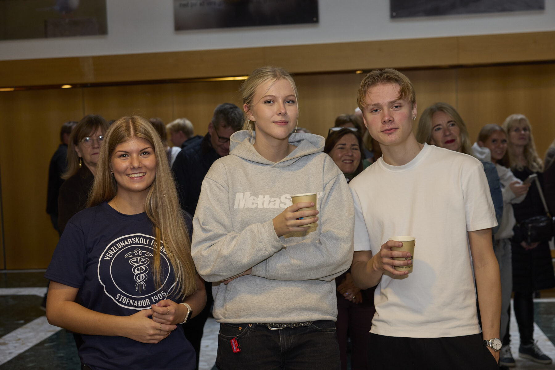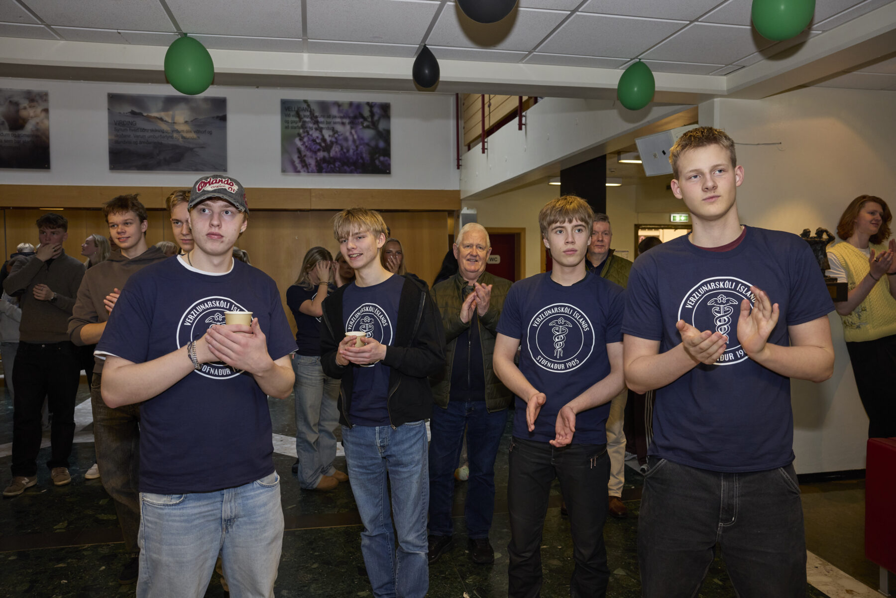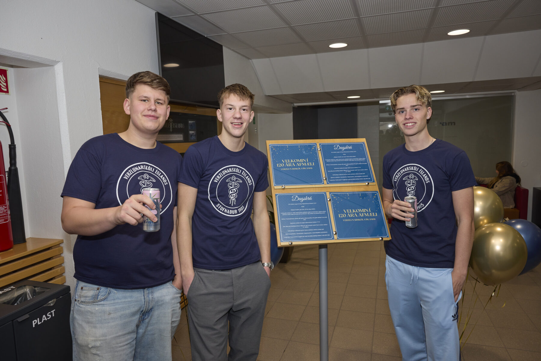 17.10.2025 Myndir frá 120 ára afmæli Verzlunarskólans Verzlunarskóli Íslands hélt upp á 120 ára afmæli sitt í gær, fimmtudaginn 16. október og lagði fjöldi gesta leið sína í skólann til að fagna þessum merka áfanga í sögu hans. Í tilefni dagsins var afhjúpuð tímalína á annari hæð skólans sem sýnir sögu Verzlunarskólans frá stofnun árið 1905 til dagsins í dag. Skólakórinn flutti nokkur lög og nemendur á þriðja ári sungu við notalega stemningu sem fyllti húsakynni skólans af lífi og gleði. Gestum gafst tækifæri til að prófa sig áfram í vélritun, sem vakti bæði forvitni og nostalgíu. Listafélag skólans hélt opna æfingu á verkinu Týnd á tveimur stöðum og bókasafnið setti upp sýningu á skólablöðum sem nemendur hafa gefið út í gegnum tíðina. Einnig voru flutt hlýleg og skemmtileg ávörp þar sem minnst var sögu skólans og samfélagsins sem hann hefur skapað. Við þökkum öllum þeim sem sáu sér fært að mæta og samgleðjast með okkur á þessum skemmtilega degi. Hér má lesa smá brot úr sögu skólans: Skólinn var stofnaður árið 1905 að frumkvæði Verzlunarmannafélags Reykjavíkur og var markmiðið að efla verslunarstétt bæjarins. Það endurspeglast í námsgreinum sem kenndar voru fyrstu árin: reikningur, bókfærsla, íslenska, enska og danska. Skólinn var fyrst til húsa í Vinaminni við Mjóstræti 3 og fór kennslan aðallega fram milli klukkan 8 og 10, sex daga vikunnar, áður en verslanir opnuðu. Daglegur skólatími var orðinn sex klukkustundir eftir fimm ára starf. Skólinn flutti í núverandi húsnæði að Ofanleiti 1 árið 1986 en fram að því hafði skólinn verið til húsa á nokkrum stöðum í miðborg Reykjavíkur, meðal annars í Vinaminni við Mjóstræti, í Melsteðshúsi við Austurstræti, á Vesturgötu 10A en lengst af við Grundarstíg. Þar starfaði skólinn árin 1931 til 1986 og frá 1962 einnig í nýbyggingu við Þingholtsstræti. Viðbygging við skólahúsið að Ofanleiti var tekin í notkun árið 2003. Verzlunarskólinn hefur frá upphafi lagt áherslu á jafnrétti kynjanna til náms. Stofnárið 1905 innrituðust jöfnum höndum piltar og stúlkur, nokkuð sem var óvenjulegt á þeim tíma og markaði framfaraskref í jafnréttisbaráttunni. Fyrsti dúx skólans árið1907 var Lovísa Ágústsdóttir Fjeldsted. Fyrstu stúdentar skólans útskrifuðust árið 1945. Árið 2021 var heldur farið að halla á drengi meðal innritaðra nemenda en þá var, í anda jafnréttissjónarmiða, tekin ákvörðun um að tryggja að ekki yrðu fleiri en 60% af einu kyni meðal nýnema. Nám í skólanum miðaði í fyrstu eingöngu að undbúningi verslunarfólks en lærdómsbraut til stúdentsprófs bættist við árið 1943 og fyrstu stúdentarnir útskrifuðust árið 1945. Grunnurinn var lagður að núverandi brautaskiptingu árið 1997 þegar alþjóðabraut og viðskiptabraut bættust við hagfræði-, mála- og stærðfræðibraut. Listgreinar fengu svo aukið vægi í skólanum þegar nám á nýsköpunar- og listabraut hófst árið 2015, sama ár og námstíminn var styttur úr fjórum árum í þrjú. Þá hefur á starfsárum skólans verið starfrækt við Verzlunarskólann öldungadeild, nám í tölvufræði, verslunarfagnám og kennsla í Norður-Atlantshafsbekknum í samstarfi við skóla í Danmörku, Færeyjum og á Grænlandi. Á þessum tímamótum, þegar skólinn fagnar 120 ára afmæli sínu, eru nemendafjöldinn 1120 í þremur bekkjardeildum og starfsmenn skólans 125 talsins.