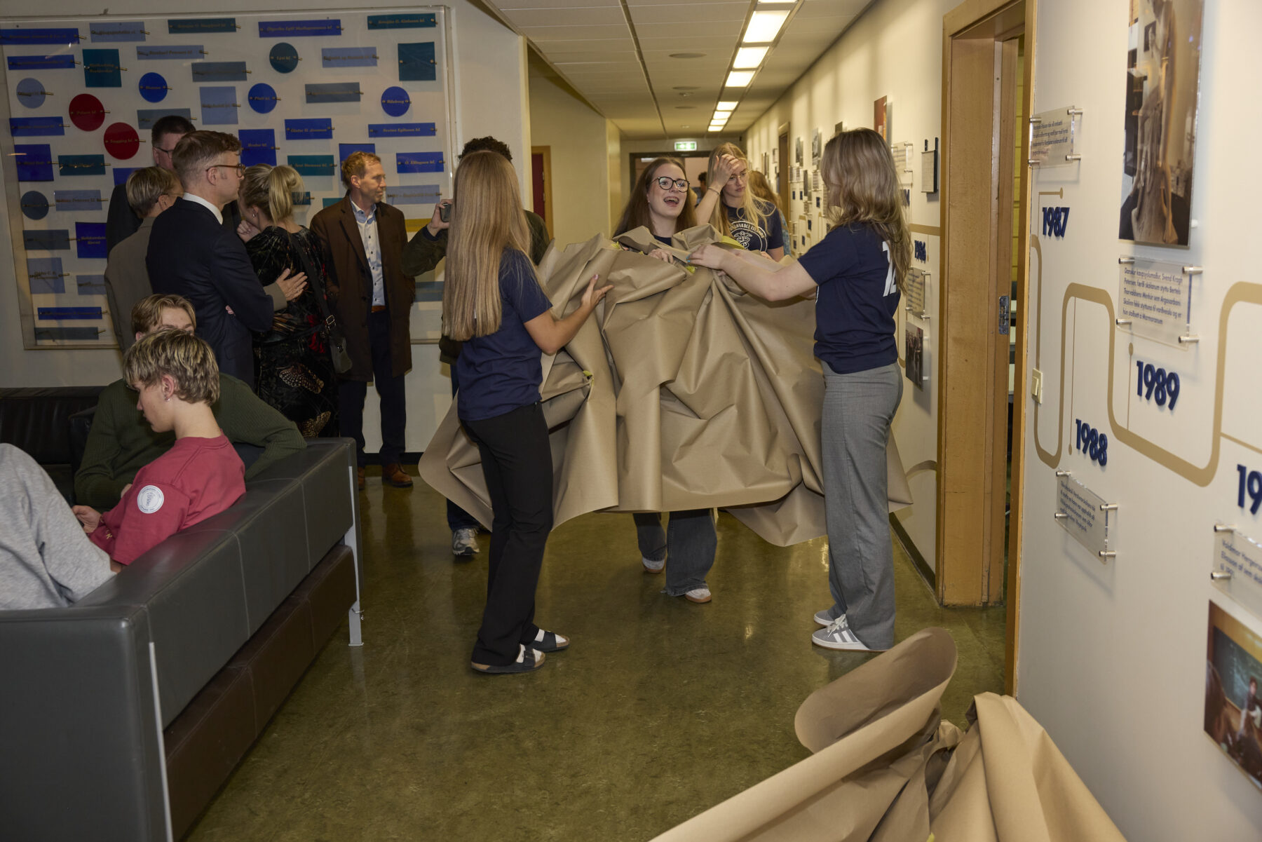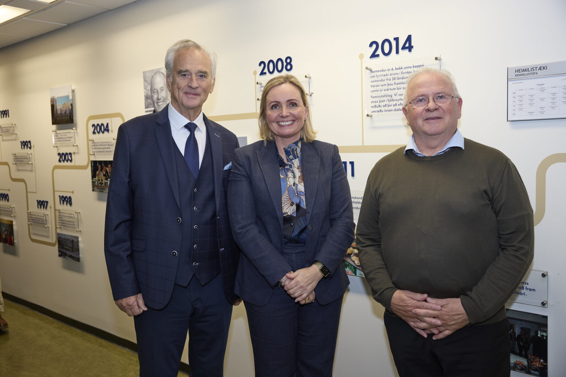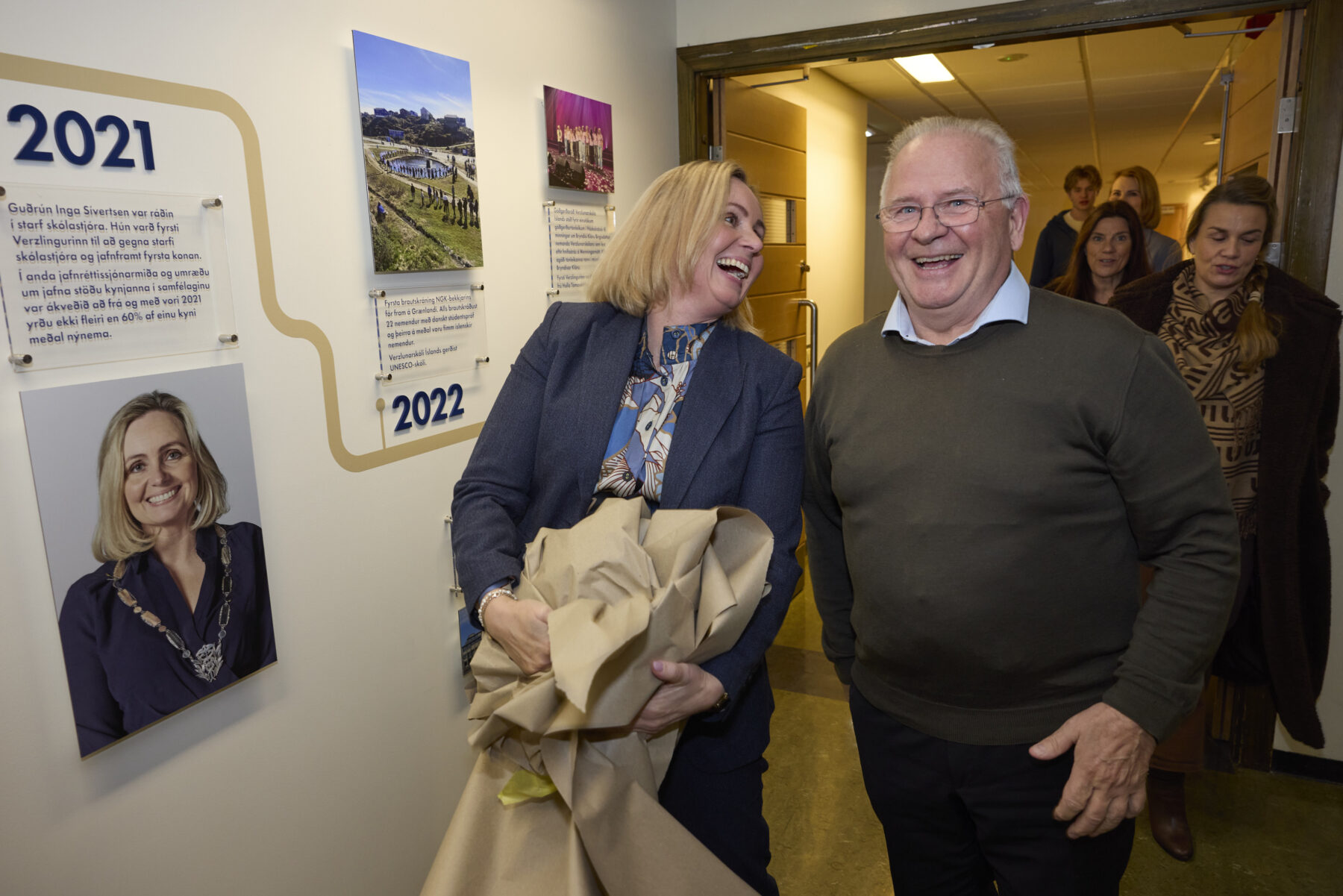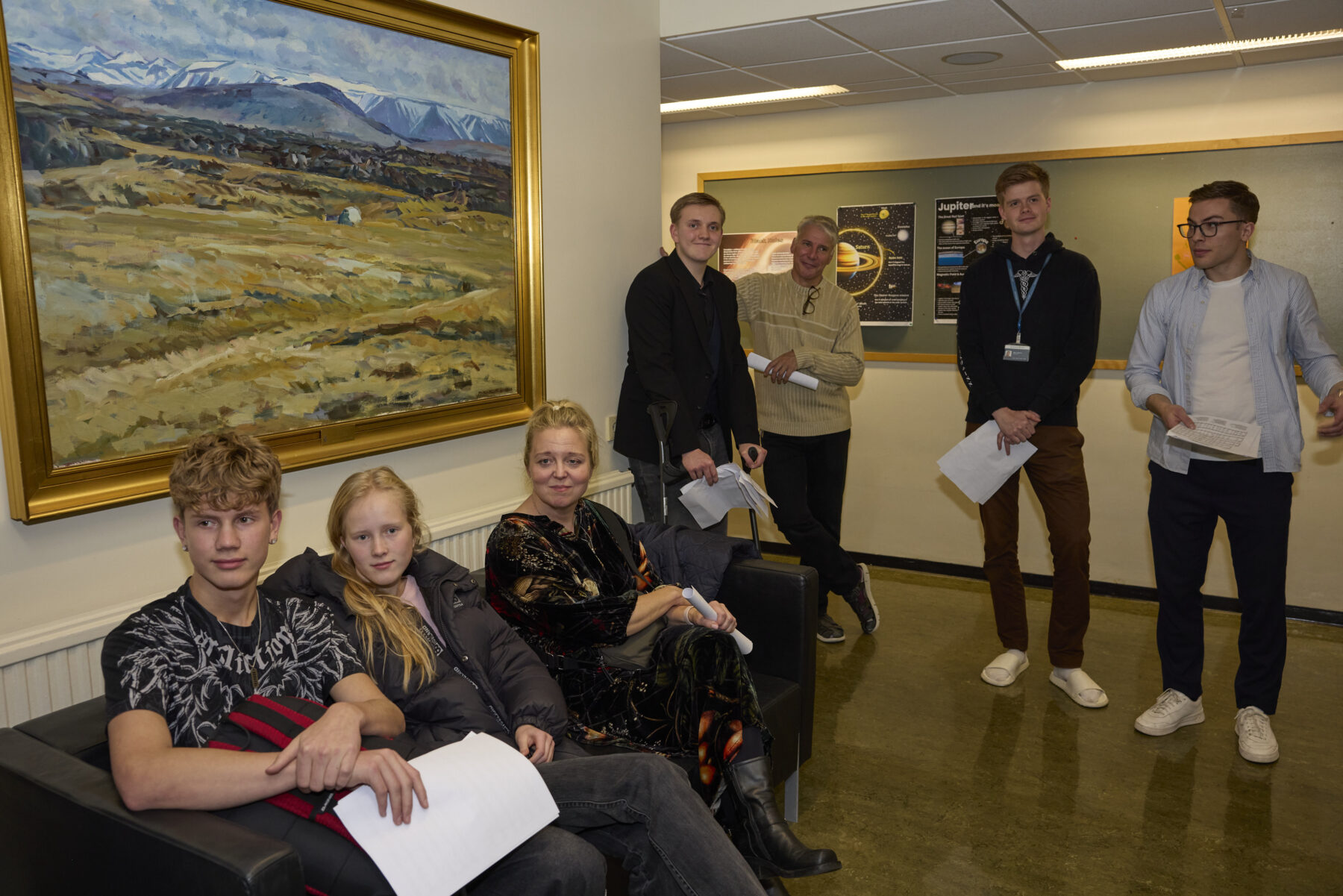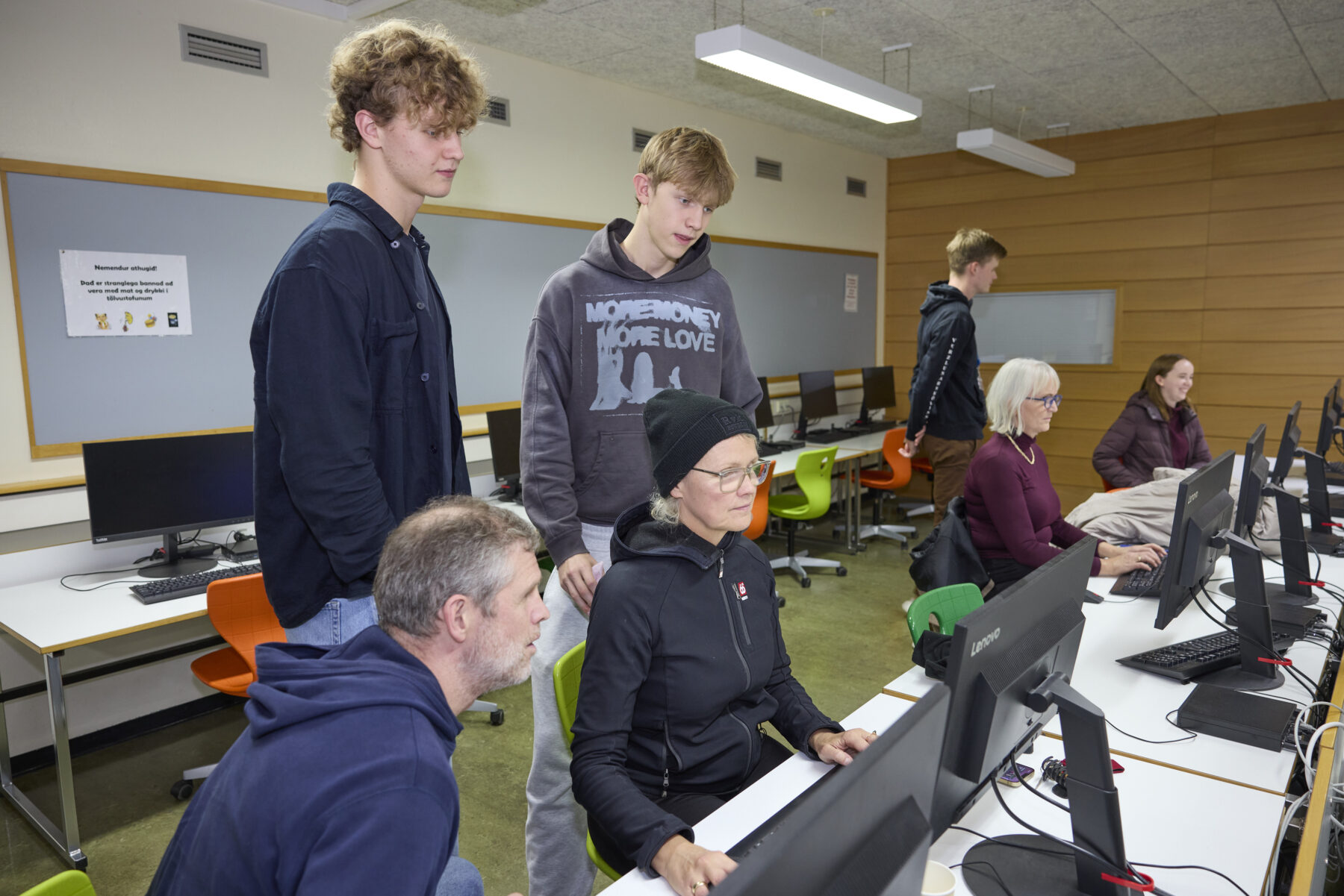 17.10.2025 Myndir frá 120 ára afmæli Verzlunarskólans Verzlunarskóli Íslands hélt upp á 120 ára afmæli sitt í gær, fimmtudaginn 16. október og lagði fjöldi gesta leið sína í skólann til að fagna þessum merka áfanga í sögu hans. Í tilefni dagsins var afhjúpuð tímalína á annari hæð skólans sem sýnir sögu Verzlunarskólans frá stofnun árið 1905 til dagsins í dag. Skólakórinn flutti nokkur lög og nemendur á þriðja ári sungu við notalega stemningu sem fyllti húsakynni skólans af lífi og gleði. Gestum gafst tækifæri til að prófa sig áfram í vélritun, sem vakti bæði forvitni og nostalgíu. Listafélag skólans hélt opna æfingu á verkinu Týnd á tveimur stöðum og bókasafnið setti upp sýningu á skólablöðum sem nemendur hafa gefið út í gegnum tíðina. Einnig voru flutt hlýleg og skemmtileg ávörp þar sem minnst var sögu skólans og samfélagsins sem hann hefur skapað. Við þökkum öllum þeim sem sáu sér fært að mæta og samgleðjast með okkur á þessum skemmtilega degi. Hér má lesa smá brot úr sögu skólans: Skólinn var stofnaður árið 1905 að frumkvæði Verzlunarmannafélags Reykjavíkur og var markmiðið að efla verslunarstétt bæjarins. Það endurspeglast í námsgreinum sem kenndar voru fyrstu árin: reikningur, bókfærsla, íslenska, enska og danska. Skólinn var fyrst til húsa í Vinaminni við Mjóstræti 3 og fór kennslan aðallega fram milli klukkan 8 og 10, sex daga vikunnar, áður en verslanir opnuðu. Daglegur skólatími var orðinn sex klukkustundir eftir fimm ára starf. Skólinn flutti í núverandi húsnæði að Ofanleiti 1 árið 1986 en fram að því hafði skólinn verið til húsa á nokkrum stöðum í miðborg Reykjavíkur, meðal annars í Vinaminni við Mjóstræti, í Melsteðshúsi við Austurstræti, á Vesturgötu 10A en lengst af við Grundarstíg. Þar starfaði skólinn árin 1931 til 1986 og frá 1962 einnig í nýbyggingu við Þingholtsstræti. Viðbygging við skólahúsið að Ofanleiti var tekin í notkun árið 2003. Verzlunarskólinn hefur frá upphafi lagt áherslu á jafnrétti kynjanna til náms. Stofnárið 1905 innrituðust jöfnum höndum piltar og stúlkur, nokkuð sem var óvenjulegt á þeim tíma og markaði framfaraskref í jafnréttisbaráttunni. Fyrsti dúx skólans árið1907 var Lovísa Ágústsdóttir Fjeldsted. Fyrstu stúdentar skólans útskrifuðust árið 1945. Árið 2021 var heldur farið að halla á drengi meðal innritaðra nemenda en þá var, í anda jafnréttissjónarmiða, tekin ákvörðun um að tryggja að ekki yrðu fleiri en 60% af einu kyni meðal nýnema. Nám í skólanum miðaði í fyrstu eingöngu að undbúningi verslunarfólks en lærdómsbraut til stúdentsprófs bættist við árið 1943 og fyrstu stúdentarnir útskrifuðust árið 1945. Grunnurinn var lagður að núverandi brautaskiptingu árið 1997 þegar alþjóðabraut og viðskiptabraut bættust við hagfræði-, mála- og stærðfræðibraut. Listgreinar fengu svo aukið vægi í skólanum þegar nám á nýsköpunar- og listabraut hófst árið 2015, sama ár og námstíminn var styttur úr fjórum árum í þrjú. Þá hefur á starfsárum skólans verið starfrækt við Verzlunarskólann öldungadeild, nám í tölvufræði, verslunarfagnám og kennsla í Norður-Atlantshafsbekknum í samstarfi við skóla í Danmörku, Færeyjum og á Grænlandi. Á þessum tímamótum, þegar skólinn fagnar 120 ára afmæli sínu, eru nemendafjöldinn 1120 í þremur bekkjardeildum og starfsmenn skólans 125 talsins.