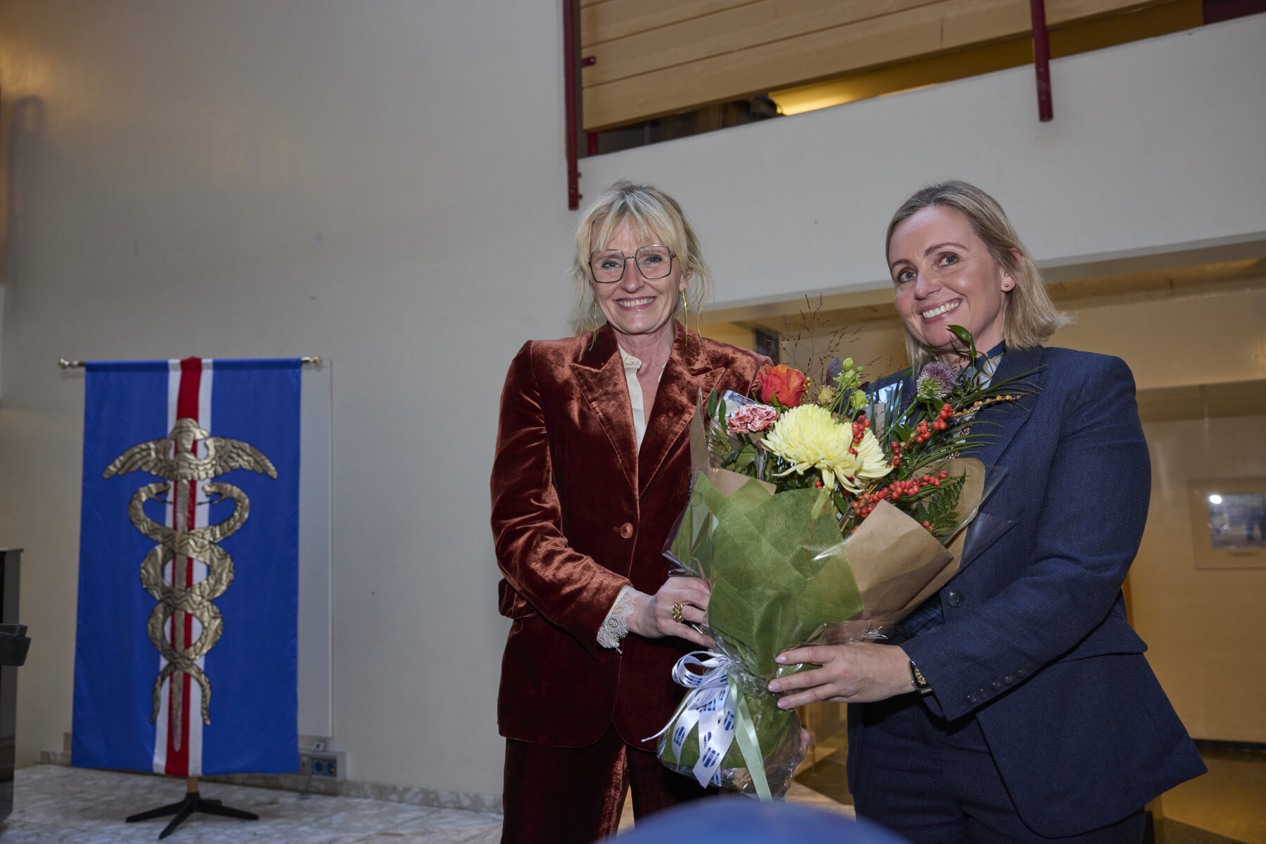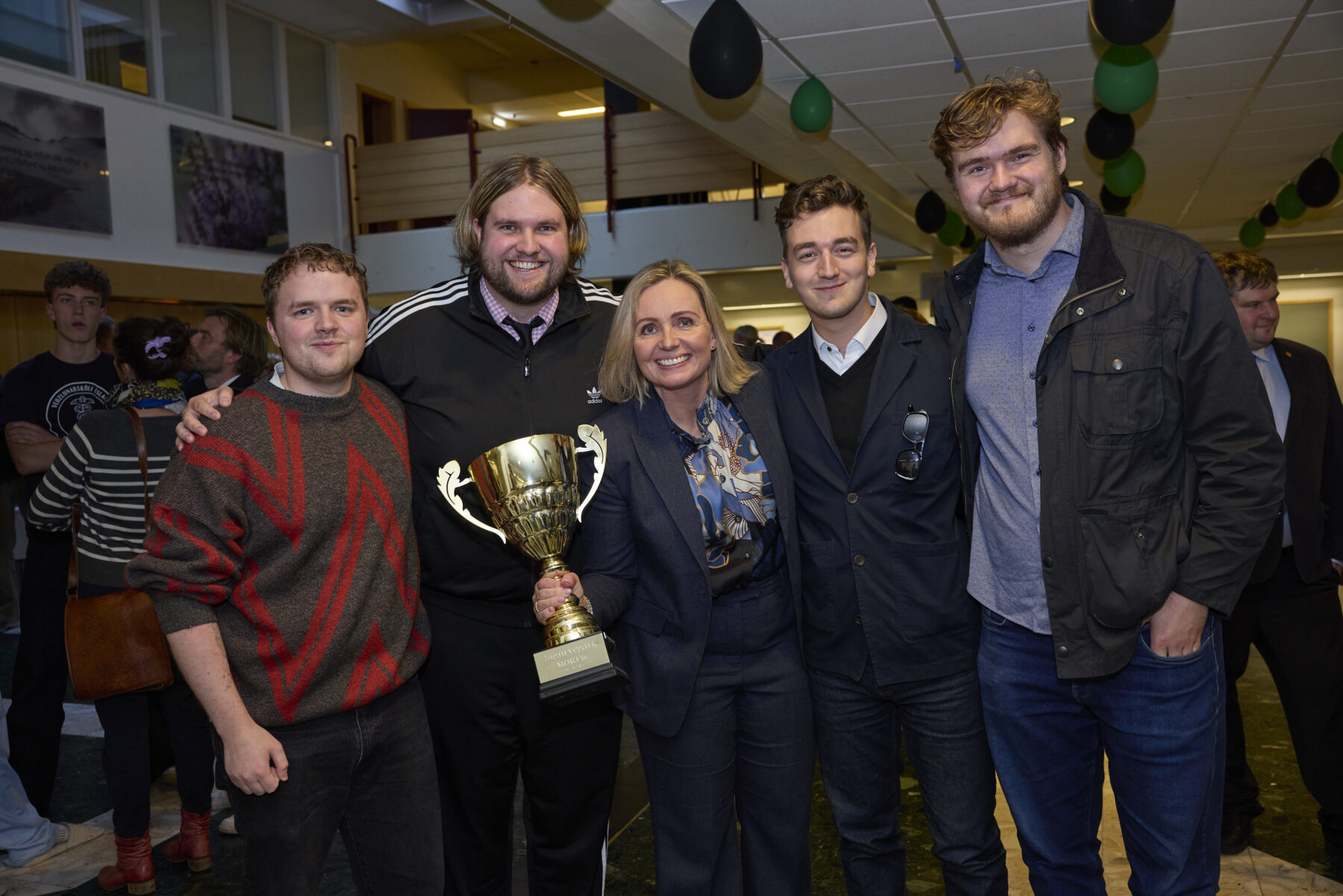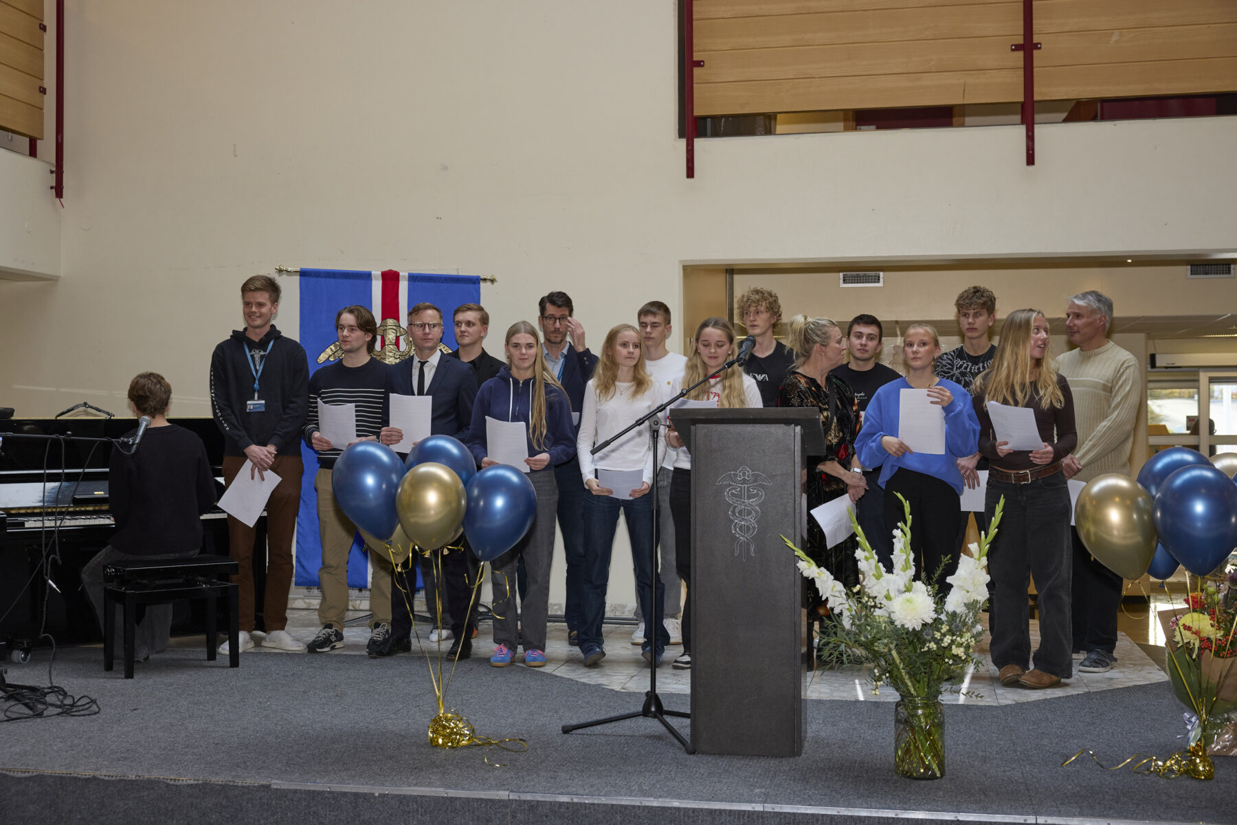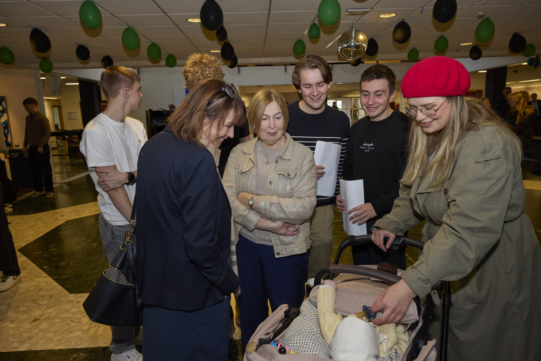 17.10.2025 Myndir frá 120 ára afmæli Verzlunarskólans Verzlunarskóli Íslands hélt upp á 120 ára afmæli sitt í gær, fimmtudaginn 16. október og lagði fjöldi gesta leið sína í skólann til að fagna þessum merka áfanga í sögu hans. Í tilefni dagsins var afhjúpuð tímalína á annari hæð skólans sem sýnir sögu Verzlunarskólans frá stofnun árið 1905 til dagsins í dag. Skólakórinn flutti nokkur lög og nemendur á þriðja ári sungu við notalega stemningu sem fyllti húsakynni skólans af lífi og gleði. Gestum gafst tækifæri til að prófa sig áfram í vélritun, sem vakti bæði forvitni og nostalgíu. Listafélag skólans hélt opna æfingu á verkinu Týnd á tveimur stöðum og bókasafnið setti upp sýningu á skólablöðum sem nemendur hafa gefið út í gegnum tíðina. Einnig voru flutt hlýleg og skemmtileg ávörp þar sem minnst var sögu skólans og samfélagsins sem hann hefur skapað. Við þökkum öllum þeim sem sáu sér fært að mæta og samgleðjast með okkur á þessum skemmtilega degi. Hér má lesa smá brot úr sögu skólans: Skólinn var stofnaður árið 1905 að frumkvæði Verzlunarmannafélags Reykjavíkur og var markmiðið að efla verslunarstétt bæjarins. Það endurspeglast í námsgreinum sem kenndar voru fyrstu árin: reikningur, bókfærsla, íslenska, enska og danska. Skólinn var fyrst til húsa í Vinaminni við Mjóstræti 3 og fór kennslan aðallega fram milli klukkan 8 og 10, sex daga vikunnar, áður en verslanir opnuðu. Daglegur skólatími var orðinn sex klukkustundir eftir fimm ára starf. Skólinn flutti í núverandi húsnæði að Ofanleiti 1 árið 1986 en fram að því hafði skólinn verið til húsa á nokkrum stöðum í miðborg Reykjavíkur, meðal annars í Vinaminni við Mjóstræti, í Melsteðshúsi við Austurstræti, á Vesturgötu 10A en lengst af við Grundarstíg. Þar starfaði skólinn árin 1931 til 1986 og frá 1962 einnig í nýbyggingu við Þingholtsstræti. Viðbygging við skólahúsið að Ofanleiti var tekin í notkun árið 2003. Verzlunarskólinn hefur frá upphafi lagt áherslu á jafnrétti kynjanna til náms. Stofnárið 1905 innrituðust jöfnum höndum piltar og stúlkur, nokkuð sem var óvenjulegt á þeim tíma og markaði framfaraskref í jafnréttisbaráttunni. Fyrsti dúx skólans árið1907 var Lovísa Ágústsdóttir Fjeldsted. Fyrstu stúdentar skólans útskrifuðust árið 1945. Árið 2021 var heldur farið að halla á drengi meðal innritaðra nemenda en þá var, í anda jafnréttissjónarmiða, tekin ákvörðun um að tryggja að ekki yrðu fleiri en 60% af einu kyni meðal nýnema. Nám í skólanum miðaði í fyrstu eingöngu að undbúningi verslunarfólks en lærdómsbraut til stúdentsprófs bættist við árið 1943 og fyrstu stúdentarnir útskrifuðust árið 1945. Grunnurinn var lagður að núverandi brautaskiptingu árið 1997 þegar alþjóðabraut og viðskiptabraut bættust við hagfræði-, mála- og stærðfræðibraut. Listgreinar fengu svo aukið vægi í skólanum þegar nám á nýsköpunar- og listabraut hófst árið 2015, sama ár og námstíminn var styttur úr fjórum árum í þrjú. Þá hefur á starfsárum skólans verið starfrækt við Verzlunarskólann öldungadeild, nám í tölvufræði, verslunarfagnám og kennsla í Norður-Atlantshafsbekknum í samstarfi við skóla í Danmörku, Færeyjum og á Grænlandi. Á þessum tímamótum, þegar skólinn fagnar 120 ára afmæli sínu, eru nemendafjöldinn 1120 í þremur bekkjardeildum og starfsmenn skólans 125 talsins.