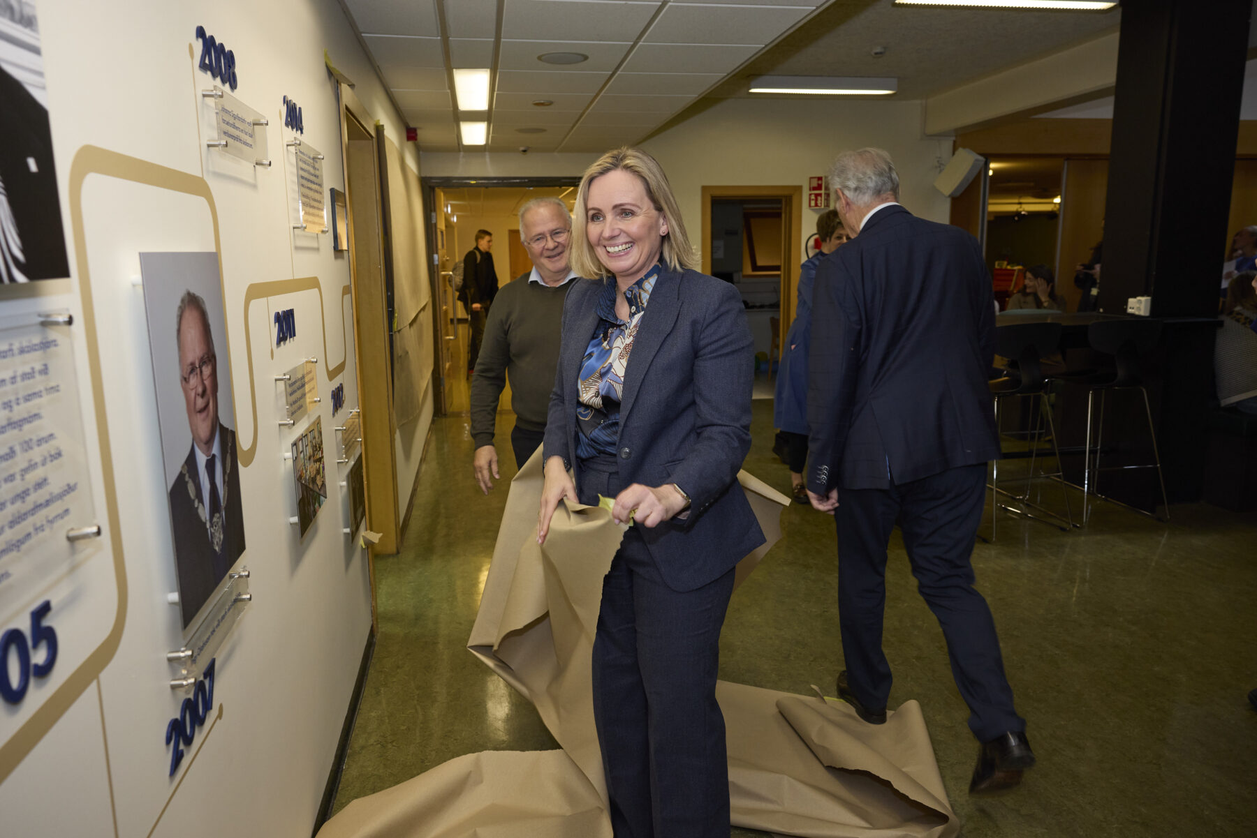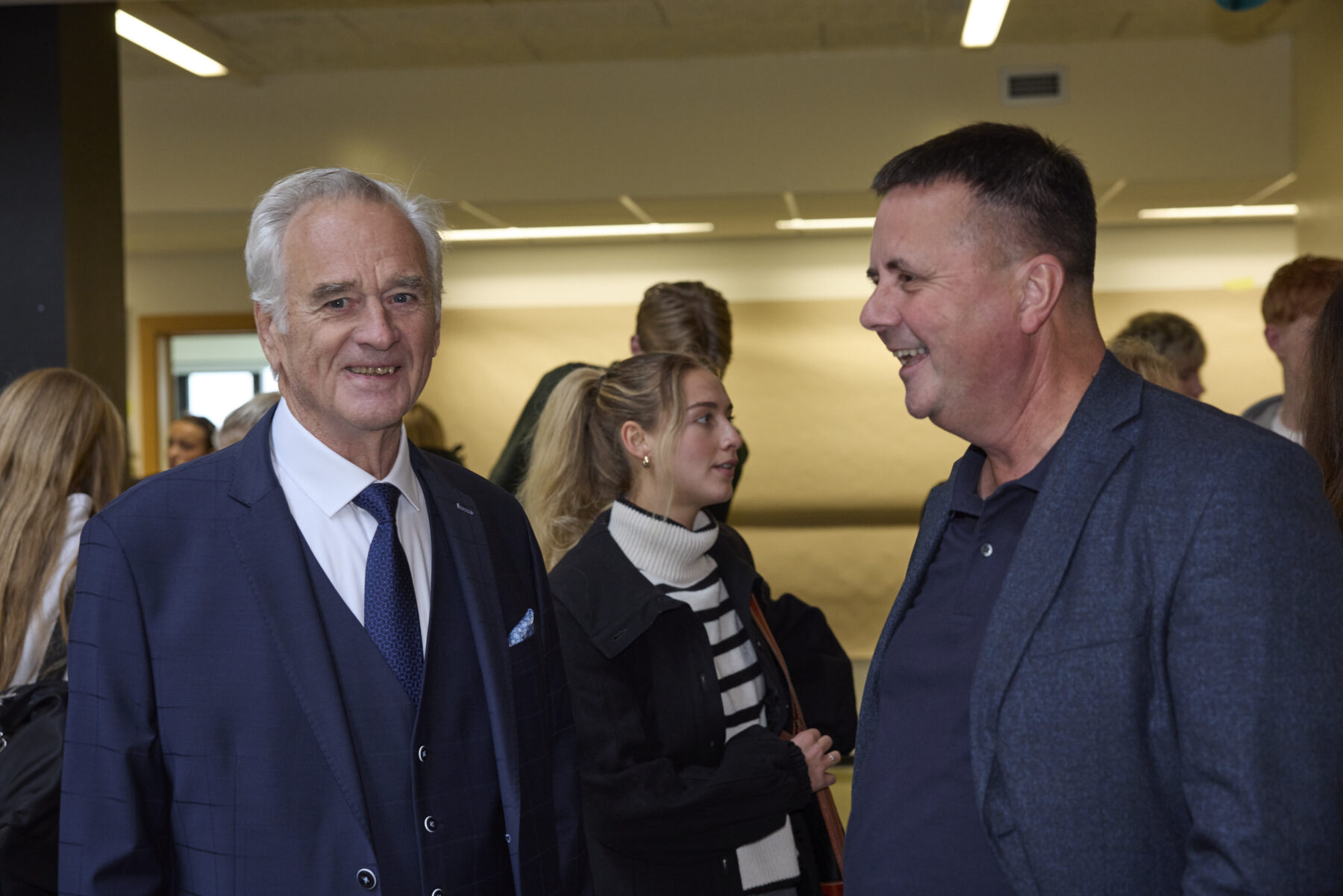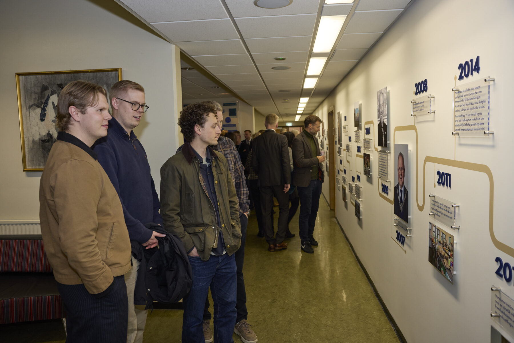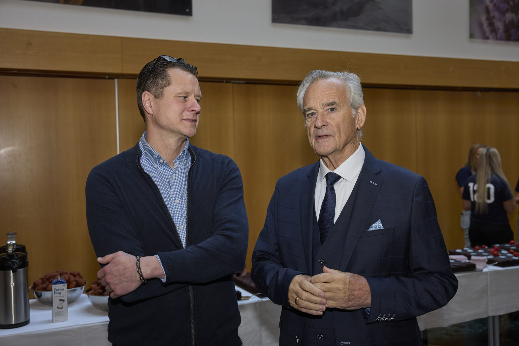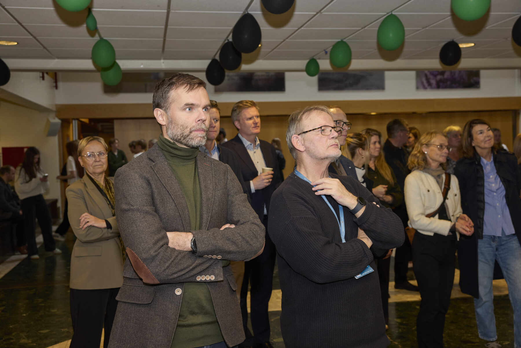17.10.2025 Myndir frá 120 ára afmæli Verzlunarskólans Verzlunarskóli Íslands hélt upp á 120 ára afmæli sitt í gær, fimmtudaginn 16. október og lagði fjöldi gesta leið sína í skólann til að fagna þessum merka áfanga í sögu hans. Í tilefni dagsins var afhjúpuð tímalína á annari hæð skólans sem sýnir sögu Verzlunarskólans frá stofnun árið 1905 til dagsins í dag. Skólakórinn flutti nokkur lög og nemendur á þriðja ári sungu við notalega stemningu sem fyllti húsakynni skólans af lífi og gleði. Gestum gafst tækifæri til að prófa sig áfram í vélritun, sem vakti bæði forvitni og nostalgíu. Listafélag skólans hélt opna æfingu á verkinu Týnd á tveimur stöðum og bókasafnið setti upp sýningu á skólablöðum sem nemendur hafa gefið út í gegnum tíðina. Einnig voru flutt hlýleg og skemmtileg ávörp þar sem minnst var sögu skólans og samfélagsins sem hann hefur skapað. Við þökkum öllum þeim sem sáu sér fært að mæta og samgleðjast með okkur á þessum skemmtilega degi. Hér má lesa smá brot úr sögu skólans: Skólinn var stofnaður árið 1905 að frumkvæði Verzlunarmannafélags Reykjavíkur og var markmiðið að efla verslunarstétt bæjarins. Það endurspeglast í námsgreinum sem kenndar voru fyrstu árin: reikningur, bókfærsla, íslenska, enska og danska. Skólinn var fyrst til húsa í Vinaminni við Mjóstræti 3 og fór kennslan aðallega fram milli klukkan 8 og 10, sex daga vikunnar, áður en verslanir opnuðu. Daglegur skólatími var orðinn sex klukkustundir eftir fimm ára starf. Skólinn flutti í núverandi húsnæði að Ofanleiti 1 árið 1986 en fram að því hafði skólinn verið til húsa á nokkrum stöðum í miðborg Reykjavíkur, meðal annars í Vinaminni við Mjóstræti, í Melsteðshúsi við Austurstræti, á Vesturgötu 10A en lengst af við Grundarstíg. Þar starfaði skólinn árin 1931 til 1986 og frá 1962 einnig í nýbyggingu við Þingholtsstræti. Viðbygging við skólahúsið að Ofanleiti var tekin í notkun árið 2003. Verzlunarskólinn hefur frá upphafi lagt áherslu á jafnrétti kynjanna til náms. Stofnárið 1905 innrituðust jöfnum höndum piltar og stúlkur, nokkuð sem var óvenjulegt á þeim tíma og markaði framfaraskref í jafnréttisbaráttunni. Fyrsti dúx skólans árið1907 var Lovísa Ágústsdóttir Fjeldsted. Fyrstu stúdentar skólans útskrifuðust árið 1945. Árið 2021 var heldur farið að halla á drengi meðal innritaðra nemenda en þá var, í anda jafnréttissjónarmiða, tekin ákvörðun um að tryggja að ekki yrðu fleiri en 60% af einu kyni meðal nýnema. Nám í skólanum miðaði í fyrstu eingöngu að undbúningi verslunarfólks en lærdómsbraut til stúdentsprófs bættist við árið 1943 og fyrstu stúdentarnir útskrifuðust árið 1945. Grunnurinn var lagður að núverandi brautaskiptingu árið 1997 þegar alþjóðabraut og viðskiptabraut bættust við hagfræði-, mála- og stærðfræðibraut. Listgreinar fengu svo aukið vægi í skólanum þegar nám á nýsköpunar- og listabraut hófst árið 2015, sama ár og námstíminn var styttur úr fjórum árum í þrjú. Þá hefur á starfsárum skólans verið starfrækt við Verzlunarskólann öldungadeild, nám í tölvufræði, verslunarfagnám og kennsla í Norður-Atlantshafsbekknum í samstarfi við skóla í Danmörku, Færeyjum og á Grænlandi. Á þessum tímamótum, þegar skólinn fagnar 120 ára afmæli sínu, eru nemendafjöldinn 1120 í þremur bekkjardeildum og starfsmenn skólans 125 talsins.