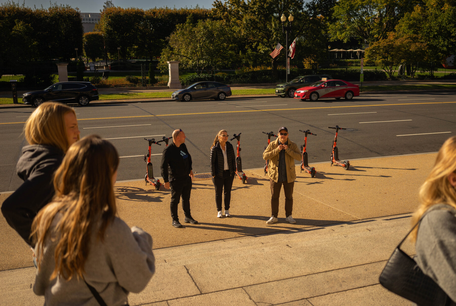 03.11.2023 Nemendaferð til Washington DC Þann 20. október fór hópur nemenda í stjórnmálafræði í námsferð til höfuðborgar Bandaríkjanna, Washington DC. Þeir hafa að undanförnu verið að læra um stjórnmál vestanhafs og ferðin því hugsuð til að dýpka þekkingu og skilning á því umfjöllunarefni. Washington skartaði sínu fegursta við komu okkar, sól skein í heiði alla dagana og hitastig um og yfir 20 gráður var kærkomin tilbreyting fyrir mörlandana eftir svala íslenska haustsins. Dagskrá vikunnar var nokkuð þétt en nemendur fóru m.a. í skoðunarferð um þinghúsið og í heimsókn á þjóðskjalasafnið, hvar þeir virtu fyrir sér hin upprunalegu eintök af frelsisyfirlýsingu Bandaríkjanna og stjórnarskránni. Einnig voru tvö Smithsonian söfn heimsótt, annars vegar sögusafnið og hins vegar safn um sögu og menningu blökkumanna. Þá voru öll helstu minnismerki borgarinnar skoðuð í löngum göngutúr í brakandi haustblíðunni. Að endingu vottaði hópurinn föllnum hermönnum, geimförum, forsetum og hæstaréttardómurum virðingu með heimsókn í þjóðargrafreitinn í Arlington á lokadegi ferðarinnar. Auk lærdómsríkra skoðunarferða var einnig ýmislegt til gamans gert. Stór hópur nemenda kynnti sér bandarískt íþróttalíf með ferðum á leiki í amerískum fótbolta og íshokkí auk þess sem margir gerðu sér glaðan dag í dýragarðinum, brunuðu um gokartbrautir eða skelltu sér í rússíbana í skemmtigarði í frítímanum. Það var því þreyttur en alsæll hópur sem sneri aftur til Íslands á ókristlegum tíma, löngu fyrir rismál, aðfaranótt 26. október, fróðari og reynslunni ríkari.
