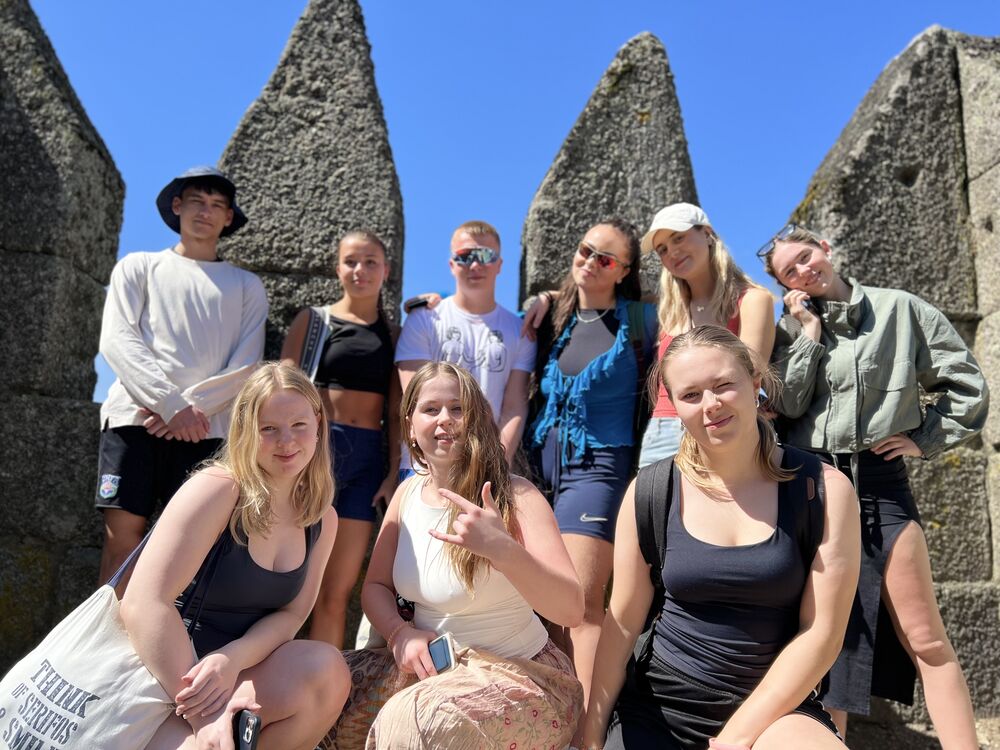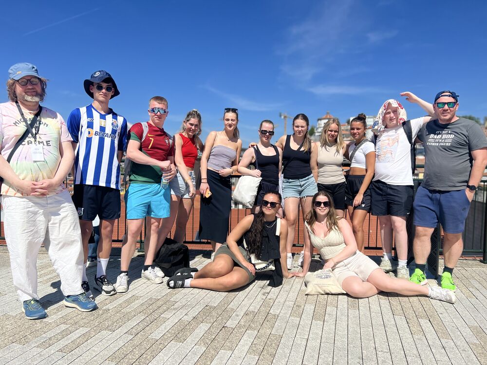 20.04.2023 Nemendahópur heimsótti Gaia í Portúgal Vikuna 17.-21. apríl voru 11 nemendur úr 2.A ásamt kennurum sínum, Ingunni, Óla Njáli og Ármanni í Erasmus+ verkefnaviku í Gaia í Portúgal, en Gaia er systurborg Porto. Vikan hófst með þátttöku í mikilvægum menningarviðburði heimamanna – stórleik Porto gegn Santa Clara – sem okkar menn unnu 2-1! Í forrétt þann dag var boðið upp á handboltaleik gegn ABC Braga, sem heimamenn unnu að sjálfsögðu örugglega. Stemmingin á leiknum var algjörlega frábær og bæði grjótharðir fótboltaaðdáendur og hinir sem hafa minni þekkingu og reynslu á því sviði skemmtu sér konunglega. Gestgjafarnir í EGAS framhaldsskólanum tóku vel á móti hópnum, en auk Íslendinga eru nemendur og kennarar úr framhaldsskóla í Tolmin í Slóveníu þátttakendur í verkefninu. Viðfangsefni vikunnar eru ýmsar pælingar um menningartengsl og hefðir, og í þessari viku var litið til heimsminjaskrár Unesco. Lokaverkefnið fólst í að hanna ferð um löndin þrjú með heimsóknum á staði sem eru á heimsminjaskránni. Ferðin gekk mjög vel, íslenskir nemendur til sóma og þetta var frábært tækifæri til að kynnast þessu fallega svæði og því góða fólki sem þar býr.