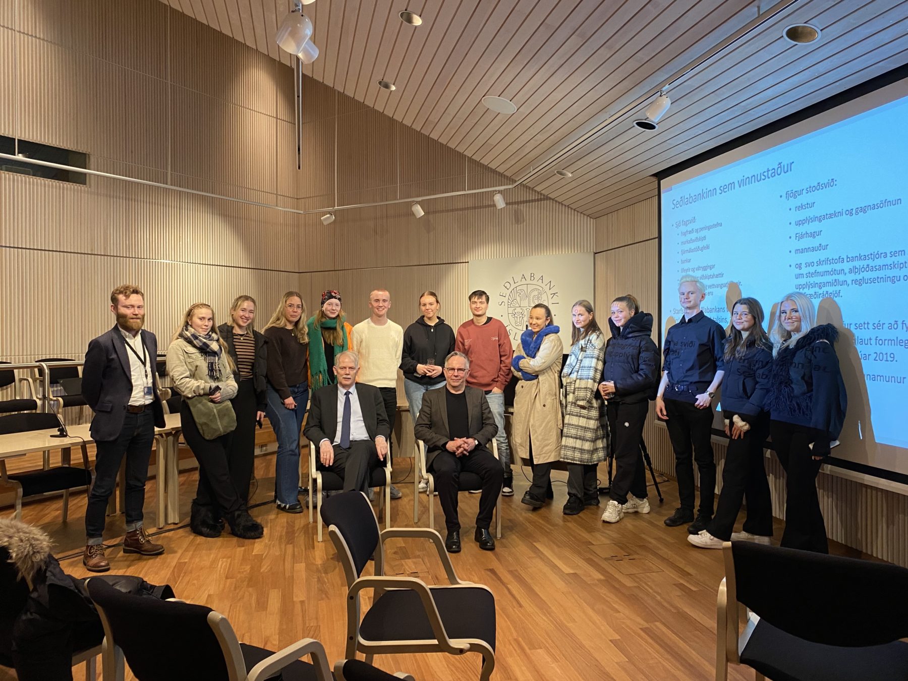 16.03.2022 Nemendur heimsóttu Seðlabanka Íslands Nemendur sem eru í þjóðhagfræði í vali fóru í heimsókn í Seðlabankann. Þar var tekið vel á móti þeim og þau fengu flotta kynningu á störfum bankans. Þau fengu einnig að skoða myntsafn Seðlabankans.