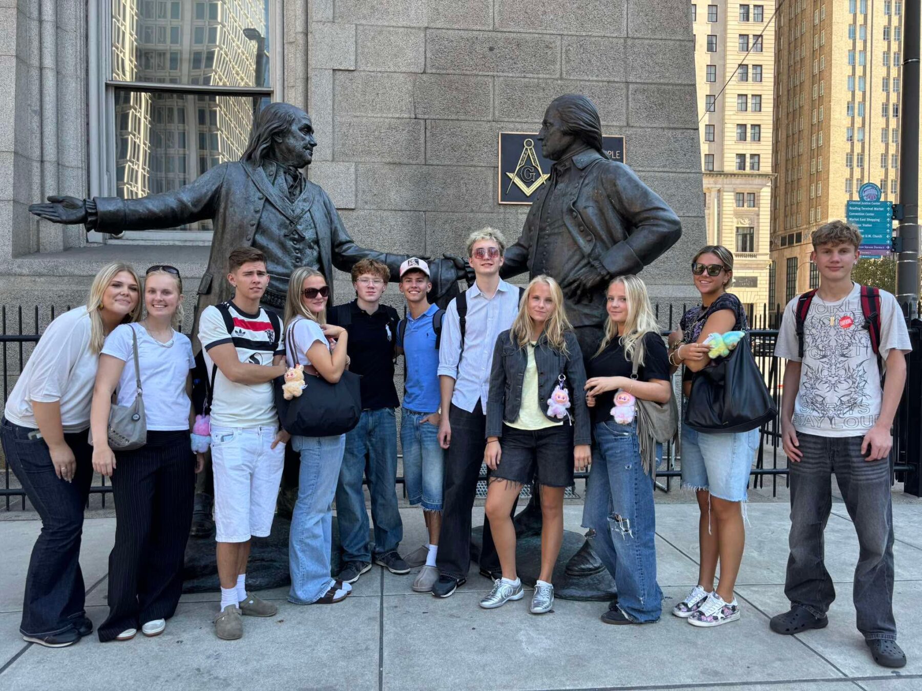 28.10.2025 Nemendur kynnast bandarísku skólastarfi og menningu Dagana 28. september til 6. október héldu 11 nemendur á öðru ári til Bandaríkjanna í fylgd tveggja kennara. Ferðin var hluti af samstarfi við The Pennington School sem er glæsilegur framhaldsskóli í New Jersey. Líkt og flestar slíkar ferðir var dagskráin fjölbreytt og sameinaði vinnu og skoðunarferðir. Nemendur dvöldu tvo daga í skólanum með gestgjöfum sínum, þar sem þeir unnu að margvíslegum verkefnum en einnig var farið í þrjár skoðunarferðir, eina til Philadelpiu og tvívegis til New York. Nemendum þótti mikið til stórborganna koma en þeir skoðuðu m.a. Frelsisstyttuna, Ground Zero og Central Park auk þess að njóta útsýnisins úr The Empire State. Að lokum fengu nemendur svo að njóta helgarinnar með gestgjöfum sínum og tóku þátt í fjölbreyttri afþreyingu, allt frá strandferðum til verslunarleiðangra.