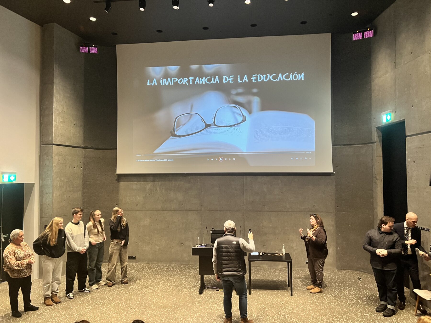 10.02.2024 Nemendur Verzlunarskólans unnu til fyrstu verðlauna í spænskuhátíð Þann 2. febrúar síðastliðinn var haldin spænskuhátíð í Háskóla Íslands í samstarfi við sendiráð Spánar á Íslandi. Efnt var til samkeppni í gerð myndbanda og veggspjalda á spænsku þar sem þemað var sjötta grein heimsmarkmiða Sameinuðu Þjóðanna,Menntun fyrir öll. Nemendur frá nokkrum framhaldsskólum á Íslandi tóku þátt í keppninni. Fjórir nemendur frá Versló, Embla Guðný Jónsdóttir Bachmann (2-B), Telma Ósk Bergþórsdóttir (2-B), Aníta Líf Ólafsdóttir (2-B) og Kári Einarsson (2-D) unnu fyrstu verðlaun með myndbandinu La importancia de la educación (Mikilvægi menntunar). Verðlaunin eru spænskunámskeið í viku við háskólann í Alcalá de Henares í Madrid.