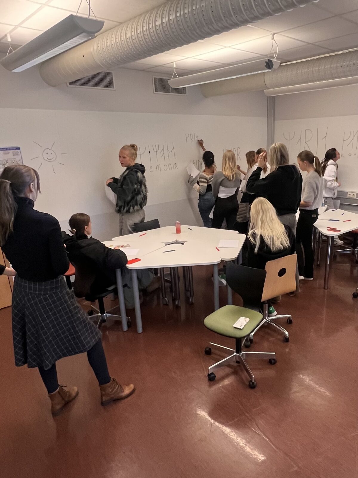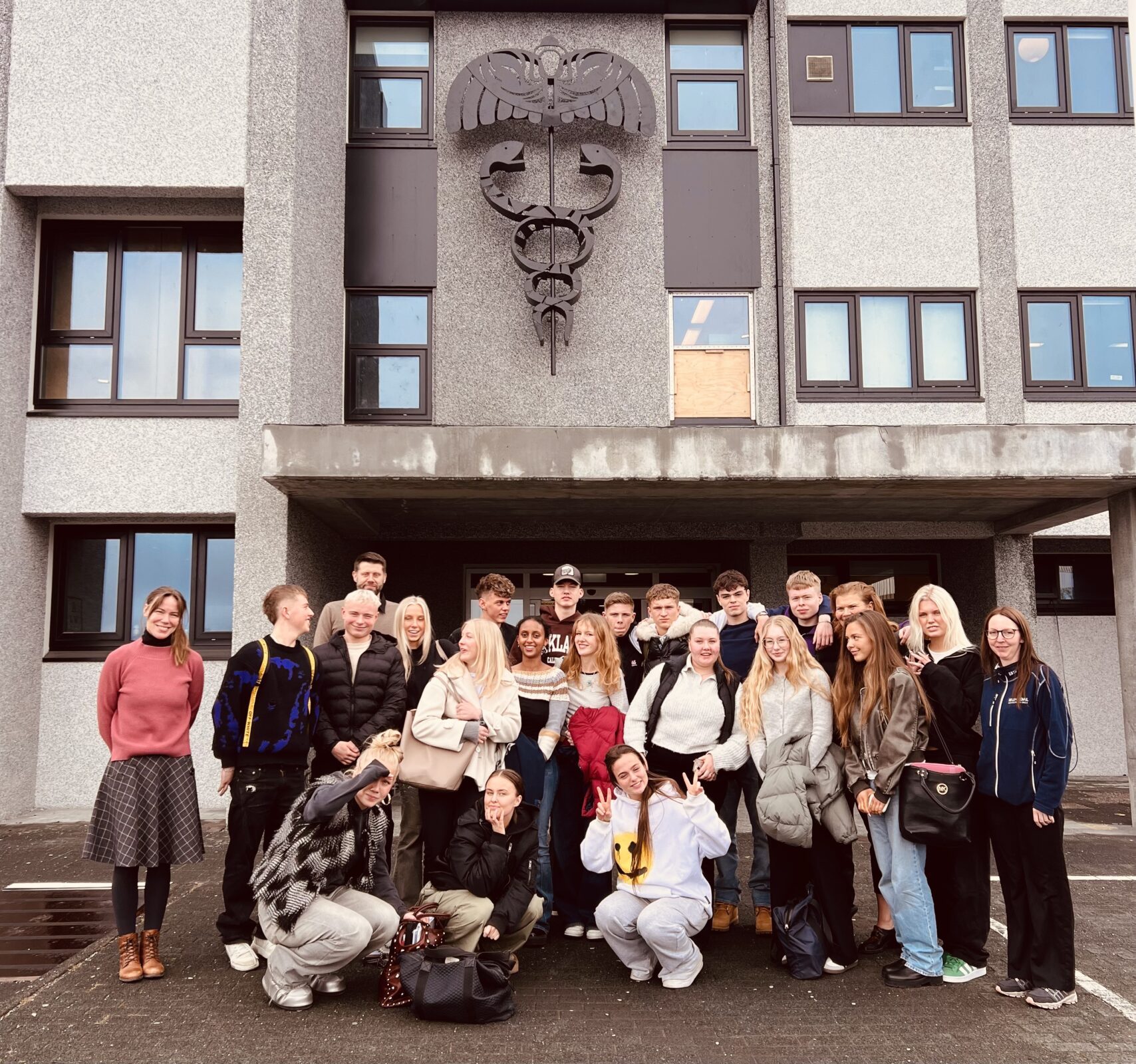 18.04.2024 Norskir nemendur heimsóttu skólann Í síðustu viku tóku nemendur úr 2. H á móti fimm nemendum frá Noregi, nánar tiltekið frá Numedal Videregående Skole. Hópurinn kom hingað með það að markmiði að fjalla um hinn merka konung Magnús Lagabæti og sameiginlega sögu Íslands og Noregs. Þar sem norsku nemendurnir höfðu nýlokið lestri á Gunnlaugs sögu Ormstungu og íslensku nemendurnir klárað yfirferð á Egils sögu Skalla-Grímssonar var borðleggjandi að flétta þessar sögur saman. Náskyldu tungumálin, íslenska og norska voru borin saman, fjallað um rúnirnar og varðveislu þeirra og hvernig þær lifa enn með ýmsum hætti hjá þjóðunum tveimur. Nemendunum var boðið í Fablabið til Kristínar Dóru og hönnuðu minjagrip og skáru út rúnir sem eiga að veita fjárhagslega velsæld, blómlegt ástarlíf, heilsu og hamingju. Þjóðminjasafnið var heimsótt og þar var rýnt í gamla muni sem eiga rætur í sameiginlegri fortíð þjóðanna. Vopnabúrið og miðaldabúningarnir vöktu mikla lukku hjá krökkunum. Íslensku nemendurnir fóru með nýju vini sína í ratleik um miðbæ Reykjavíkur þar sem helstu kennileiti voru kynnt fyrir þeim ásamt íslensku sælgæti sem gladdi munn og maga gestanna. Hefðbundið flatbökuboð var í skólanum og sund og ísbíltúramenning okkar sló í gegn hjá gestunum. Eins og alltaf stóðu krakkarnir okkar sig frábærlega og er mikil tilhlökkun að endurgjalda heimsóknina næsta vetur. Play
