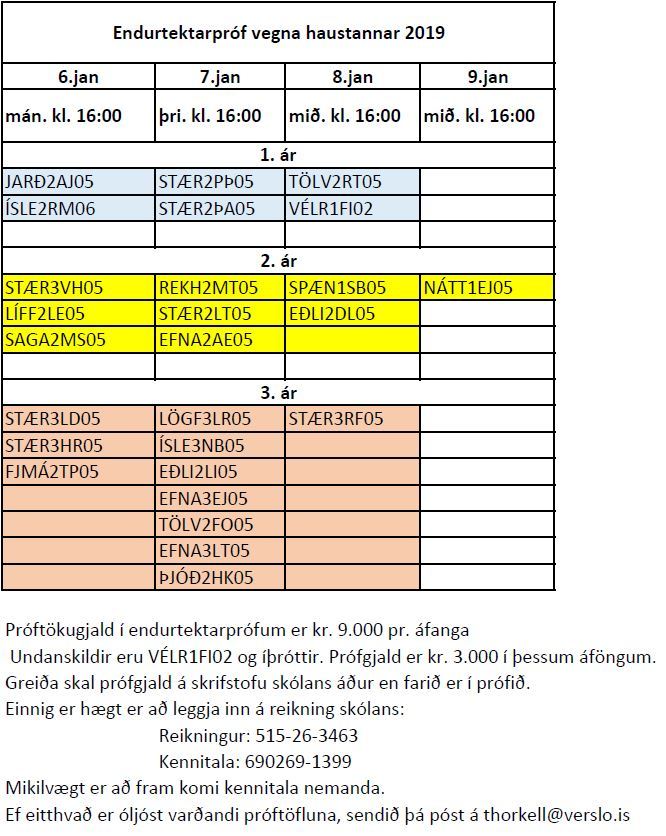 Umsókn um skólavist á 1. ári (vorönn), 2. og 3. ári