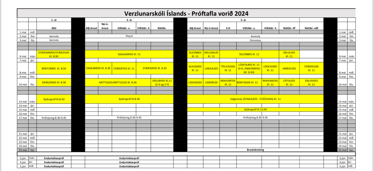 26.02.2024 Próftöflur komnar á netið Próftöflur fyrir bæði dagskóla og fjarnám eru komnar á netið. Próftöflur vorannar 2024