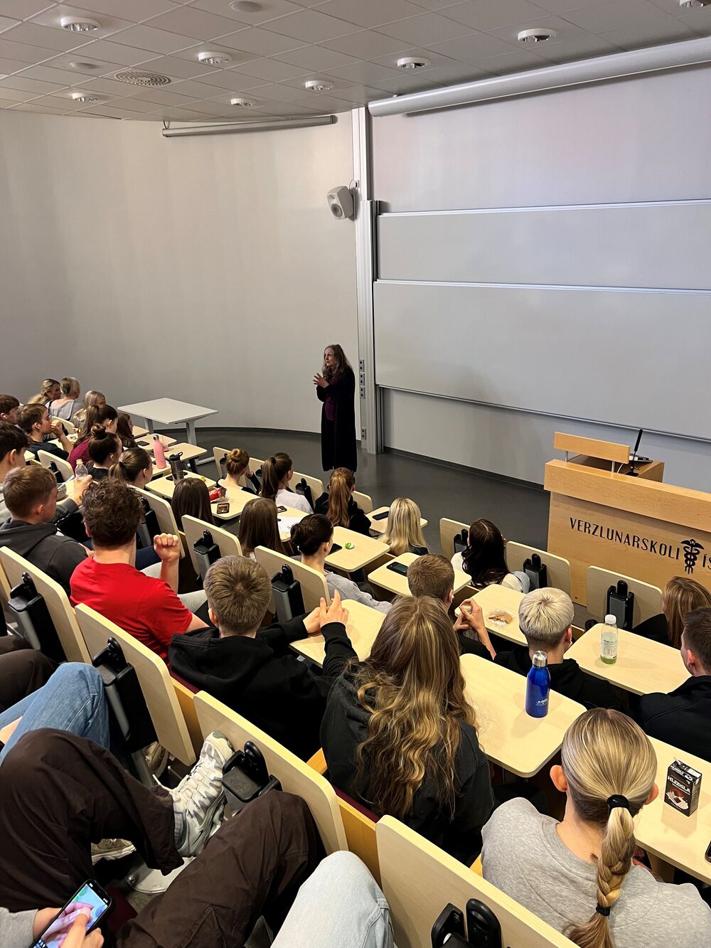 27.04.2023 Rithöfundurinn Ragnheiður Gestsdóttir heimsótti nemendur Ragnheiður Gestsdóttir rithöfundur heimsótti nemendur á 1. ári í morgun og ræddi við þá um ritstörf sín. Hún fjallaði m.a. um hvaða áskoranir það fæli í sér að skrifa skáldsögur, hvernig hugmyndir fæðast, mikilvægi sjónarhorns auk fleiri atriða á sviði ritlistar. Sérstakar umræður spunnust um skáldsöguna Blindu en nemendur lesa hana sem hluta af námsefni í íslensku á yfirstandandi önn. Þar voru ýmsar siðferðislegar sem heimspekilegar spurningar ræddar og ljóst að nemendur höfðu margir hverjir hugleitt efni hennar út frá ýmsum hliðum. Ragnheiður Gestsdóttir hefur bæði skrifað og myndskreytt bækur fyrir börn og unglinga auk þess að vera höfundur þriggja glæpasagna. Hún fékk Blóðdropann, íslensku glæpasagnaverðlaunin, fyrir skáldsöguna Farangur árið 2022. Bókin hefur einnig verið tilnefnd til norrænna glæpasagnaverðlauna. Þess má til gamans geta að Ragnheiður fagnar 70 ára afmæli sínu á mánudag, 1. maí, með útgáfu nýrrar skáldsögu.