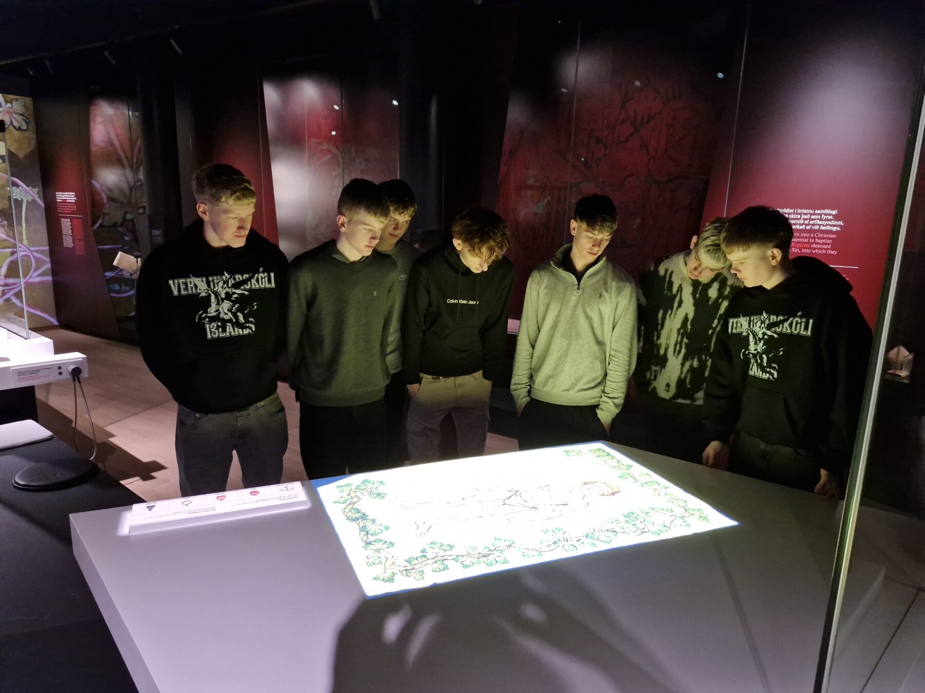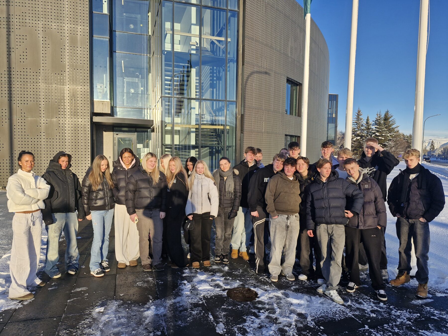 29.01.2025 Söguleg heimsókn í Eddu Sá sögulegi atburður átti sér stað í morgun að nemendur 1-Y og 1-E urðu fyrstir íslenskra framhaldsskólanemenda til að heimsækja handritasýninguna Heimur í orðum í Eddu – húsi íslenskunnar – og þar með þeir fyrstu til að kynnast hinum nýju heimkynnum þjóðararfsins. Marta Guðrún Jóhannesdóttir, safnkennari Eddu, tók á móti nemendum og fræddi þá um handritin og þá glæsilega sýningu sem nýverið var opnuð í húsi íslenskunnar. Meðal þeirra dýrgripa sem eru til sýnis eru Konungsbók eddukvæða, Flateyjarbók auk brota úr handritum Snorra-Eddu og Egils sögu Skallagrímssonar. Þá er þar að finna ýmiss konar skemmtilegan fróðleik um heimssýn bæði heiðinna og kristinna manna og nokkur gullkorn úr fornum lagasöfnum úr handritasafni Árnastofnunar. Vakti refsing sú er við var lögð því athæfi að kasta af sér vatni á náungann hvað mesta kátínu nemenda. Varðaði það fjörbaugsgarð eða þriggja ára útlegð; gengju menn lengra í slíkum herfilegum sóðaskap var það skóggangssök (ævilöng útlegð). Var ekki annað sjá en að nemendur kynnu vel við sig í návist hinna ómetanlegu dýrgripa og munu allir nemendur á 1. ári skólans heimsækja Eddu á næstu vikum í tengslum við lestur þeirra á Snorra-Eddu og eddukvæðum.