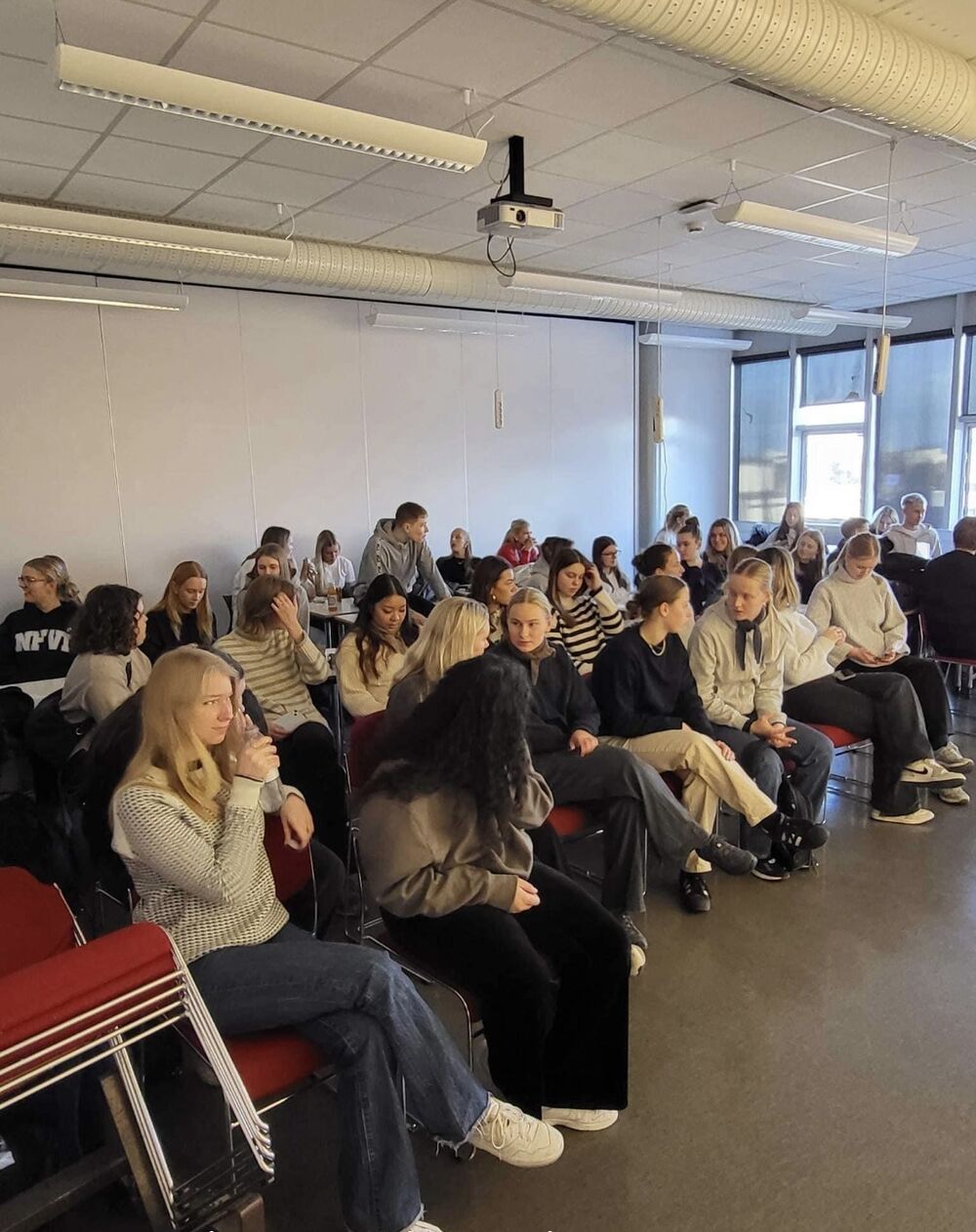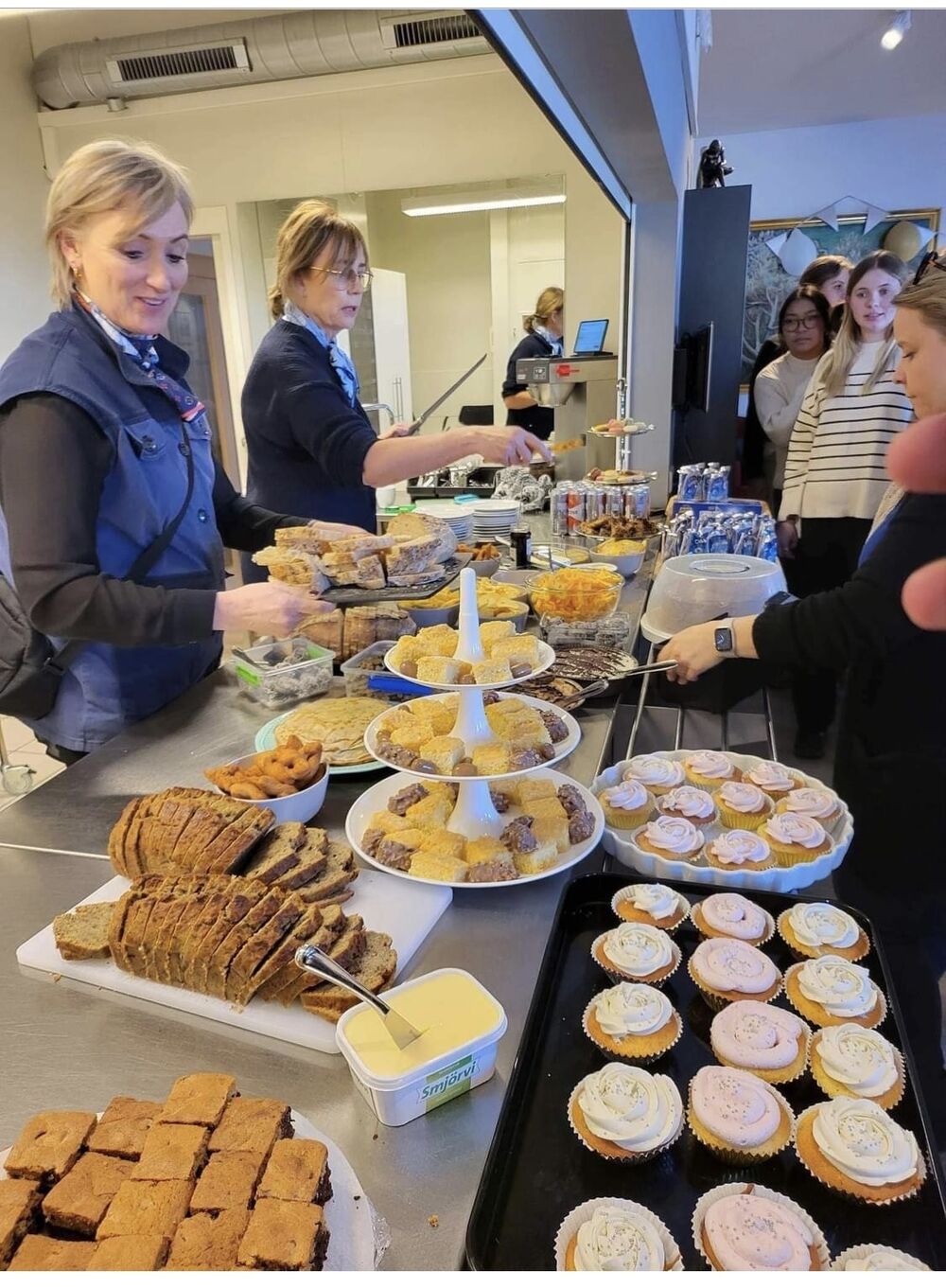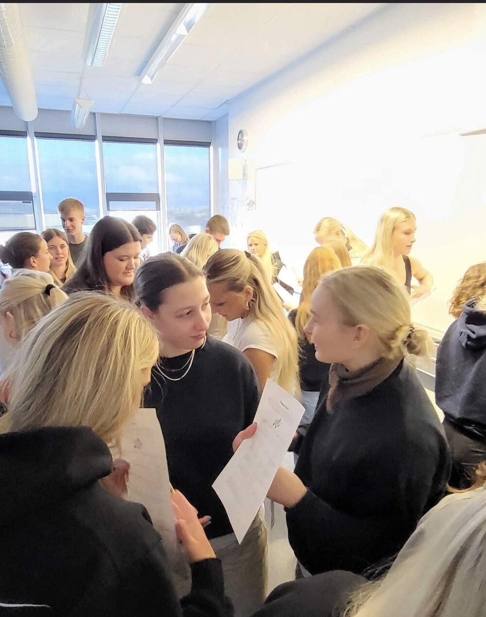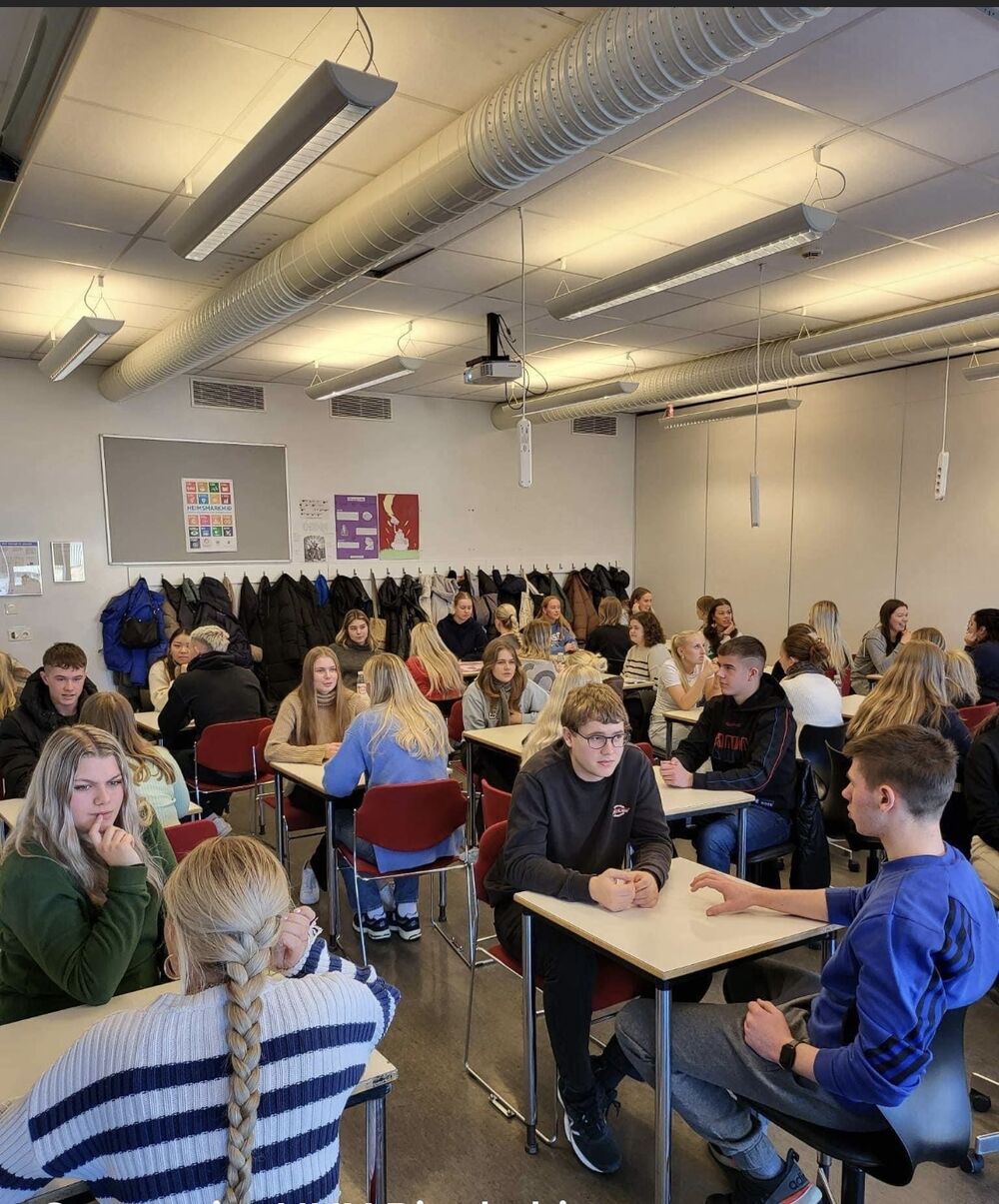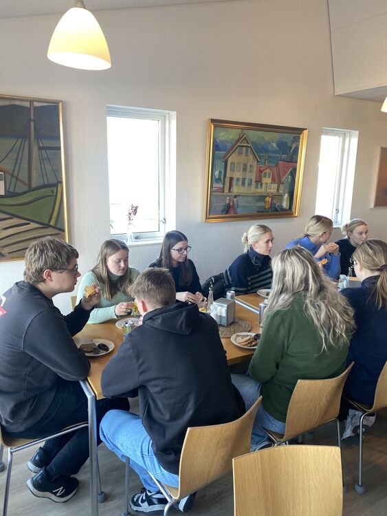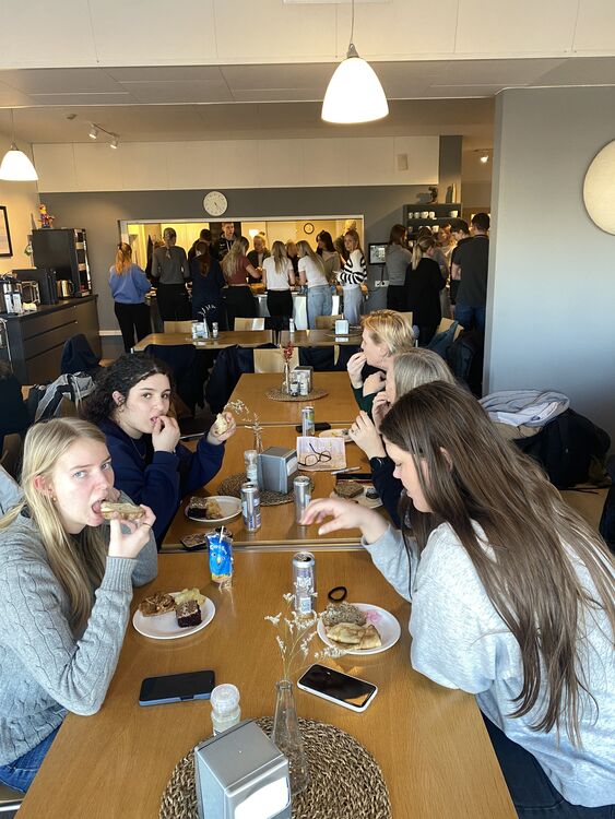 16.03.2023 Stór nemendahópur frá Danmörku kíkti í heimsókn 26 nemendur og tveir kennarar þeirra frá Gymnasiet HHX i Skjern og Gymnasiet HHX i Ringkøbing í Danmörku hafa verið í heimsókn hjá 1-S á mánudag og þriðjudag. Þetta er Erasmusverkefni þar sem nemendur vinna saman ýmis verkefni, bæði á ensku og dönsku. Einnig fóru nemendur í hópum á hina ýmsu staði í Reykjavík og kynntu svo afrakstur ferðarinnar í máli og myndum hér í skólanum. Dönsku nemendurnir gistu heima hjá okkar íslensku nemendum eina nótt og síðan er stefnt að því að 1-S fari í heimsókn til Danmerkur í haust. 1-S hélt glæsilegt Pálínuboð í lok dags í gær þar sem boðið var upp á gómsætar veitingar. Allir kvöddust saddir og sælir og fullir tilhlökkunar fyrir endurfundum í haust.