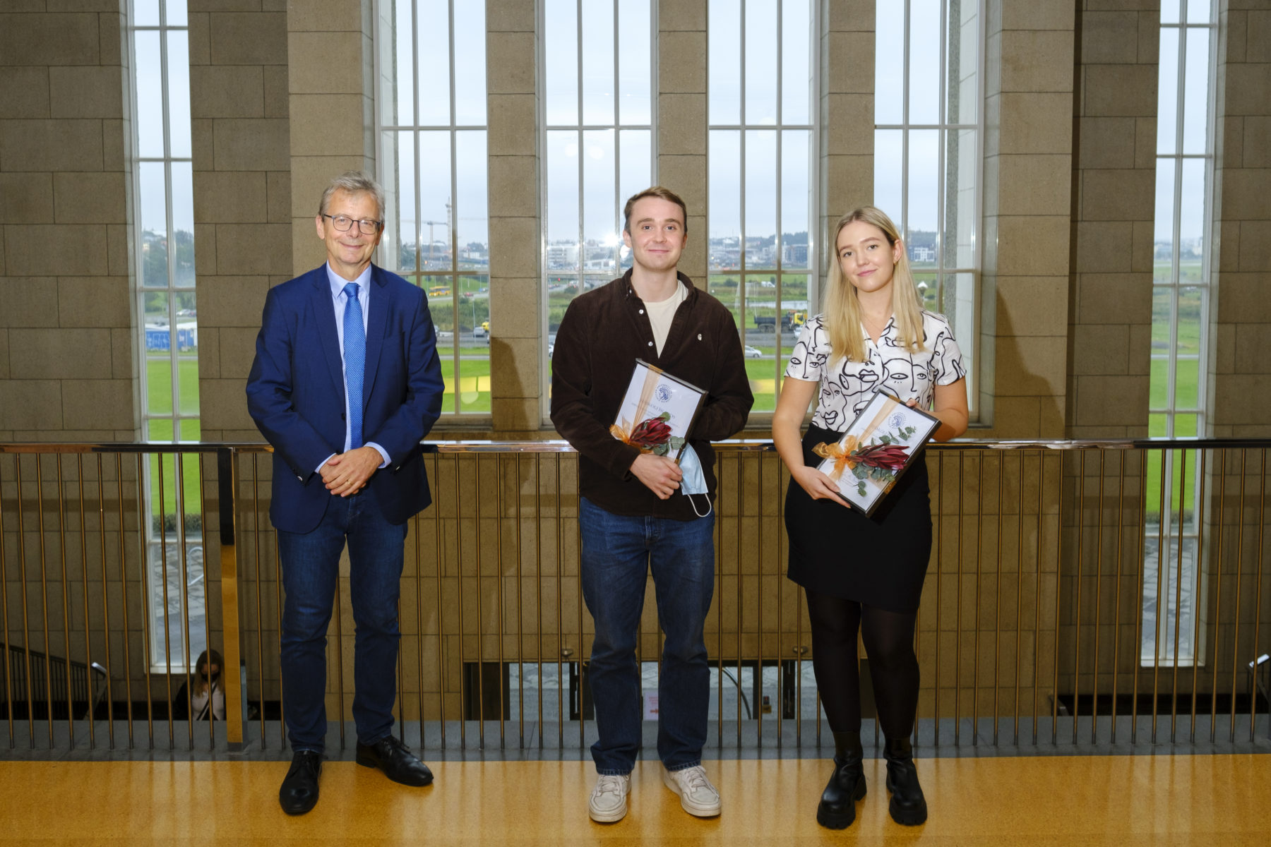 01.09.2021 Tveir fyrrverandi nemendur VÍ fengu styrk úr Afreks- og hvatningarsjóði stúdenta HÍ Á mánudaginn síðastliðinn tóku tveir fyrrverandi nemendur Verzlunarskólans, þau Auðun Bergsson og Kolbrún Sara Haraldsdóttir, við styrkjum úr Afreks- og hvatningarsjóði stúdenta Háskóla Íslands. Styrkir eru veittir nýnemum við Háskóla Íslands sem náð hafa framúrskarandi árangri í námi til stúdentsprófs og jafnframt látið til sín taka á öðrum sviðum, svo sem í félagsstörfum í framhaldsskóla eða listum og íþróttum. Verzlunarskólinn óskar þeim til hamingju.