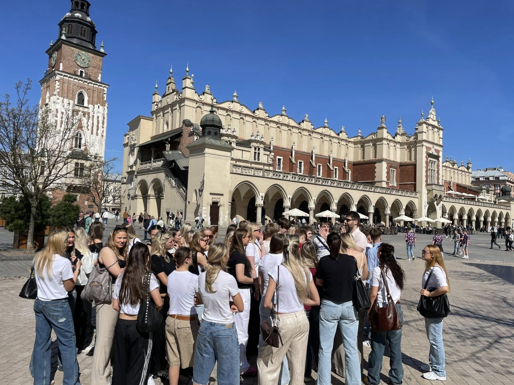 28.04.2025 Verzlunarskólanemar í Kraká – á slóðum helfararinnar Í síðustu viku fóru nemendur úr Verzlunarskóla Íslands í fræðsluferð til Krakár í Póllandi sem hluti af áfanganum Á slóðum helfararinnar. Markmið ferðarinnar var að dýpka skilning nemenda á helförinni og áhrifum hennar á sögu og menningu Evrópu. Á meðan dvölinni í Kraká stóð heimsóttu nemendurnir minnisvarða og söfn sem tengjast sögu gyðinga í borginni, þar á meðal Schindler-safnið og gamla gyðingahverfið Kazimierz. Hápunktur ferðarinnar var heimsókn í útrýmingarbúðirnar Auschwitz-Birkenau, þar sem nemendur fengu leiðsögn um svæðið og fræðslu um þær hörmungar sem áttu sér stað þar. Ferðin var bæði vel hepnnuð og fræðandi, og nemendur lýstu því að hún hefði veitt þeim dýpri innsýn í þessa mikilvægu sögu. Slíkar ferðir eru mikilvægur hluti af menntun sem stuðlar að gagnrýninni hugsun og samkennd.