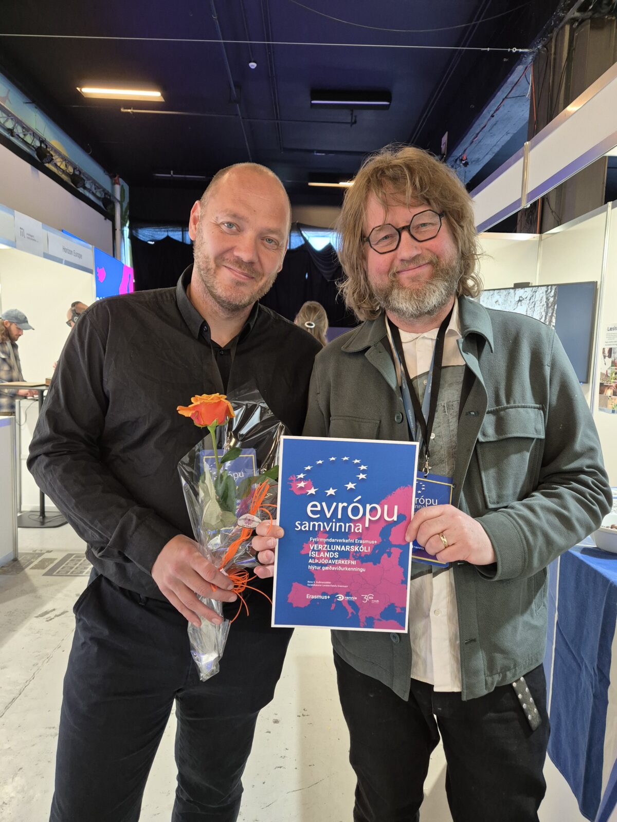 10.05.2024 Verzlunarskólinn hlaut viðurkenningu fyrir Erasmus+ verkefni Miðvikudaginn 8. maí tók Verzlunarskólinn þátt í viðburðinum Evrópusamvinna í 30 ár – Uppskeruhátíð Evrópuverkefna í Kolaportinu. Fyrir viðburðinum stóðu RANNÍS og Evrópusambandið á Íslandi. Verzlunarskólinn fékk þar viðurkenningu fyrir framúrskarandi Erasmus+ verkefni. Skólinn kynnti starf sitt með ótrúlega fjölbreyttum hópi aðila af öllum skólastigum og mörgum stofnunum og verkefnum úr óformlega geiranum, t.d. Læti (áður Stelpur rokka) og Pieta samtökin. Greinilegt var af þeirri miklu grósku sem þarna var að sjá að Evrópusamstarfið hefur skilað Íslandi miklu og það er okkur í Versló mikill heiður að vera áfram hluti af þessu mikilvæga mennta- þróunarstarfi sem er fjármagnað og stutt af Erasmus+ áætlun Evrópusambandsins.